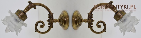 Luksusowe kinkiety z brązu. Retro lampy ścienne z kloszami do zamku, pałacu, dworu.