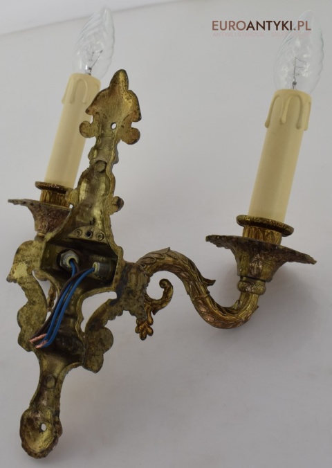 Pałacowy kinkiet barokowy z dawnych lat. Lampy antyki.