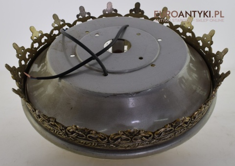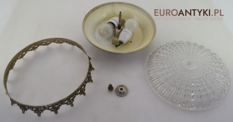 Całość bez uszkodzeń. Kompletna. Elektryka sprawna. Standardowe gniazda typu E27 o maksymalnej mocy 80 watt. Wszystkie lampy wysyłamy bez żarówek. W dzisiejszych czasach można kupić żarówki LEDowe o różnej barwie światła, o różnym natężeniu i o różnym kształcie. Więc tak na prawdę malutka żarówka może być potężnej mocy i nie pobierać wielu wattów, przez co nie spali lub nie przegrzewa kabli elektrycznych.