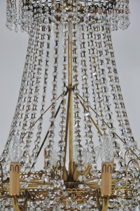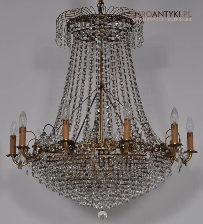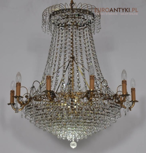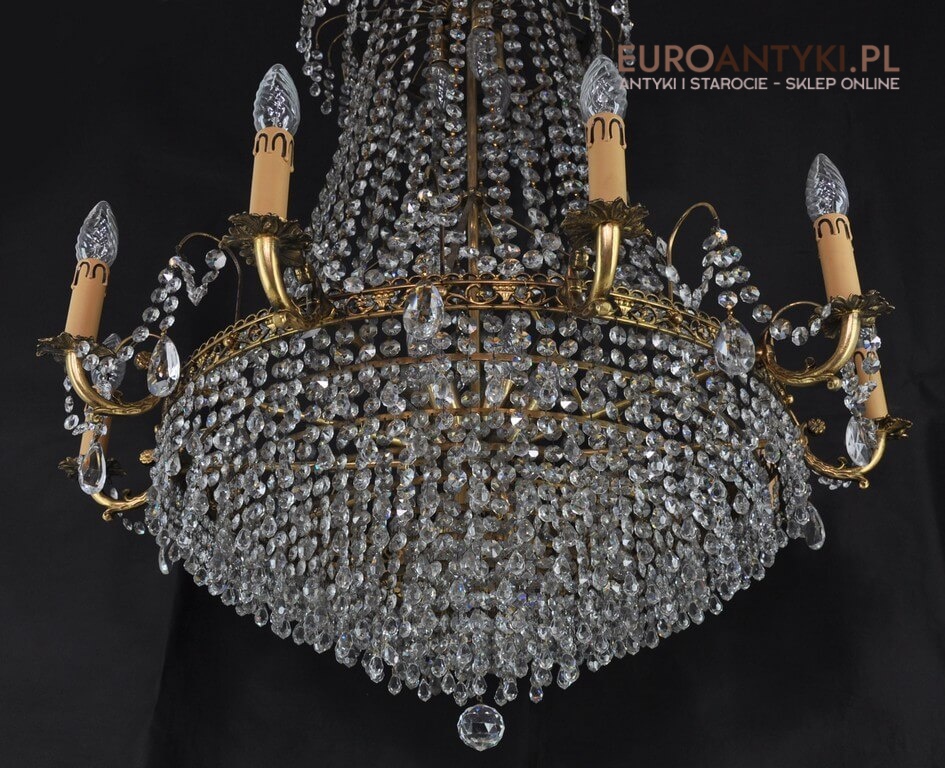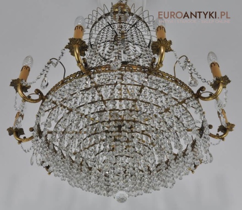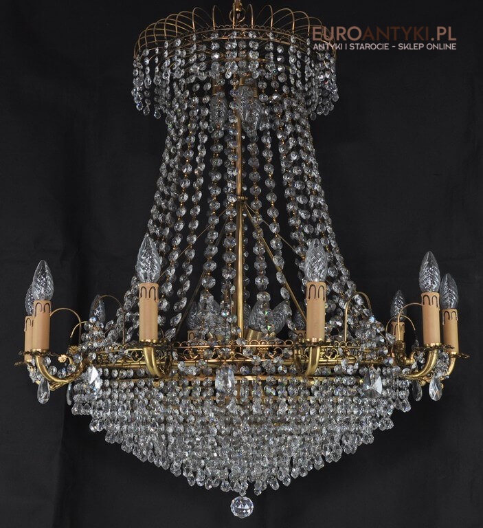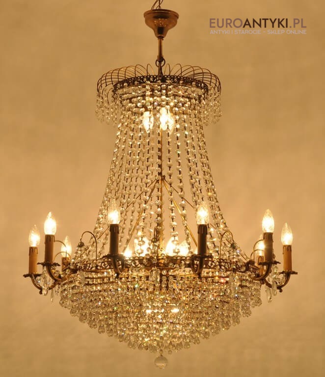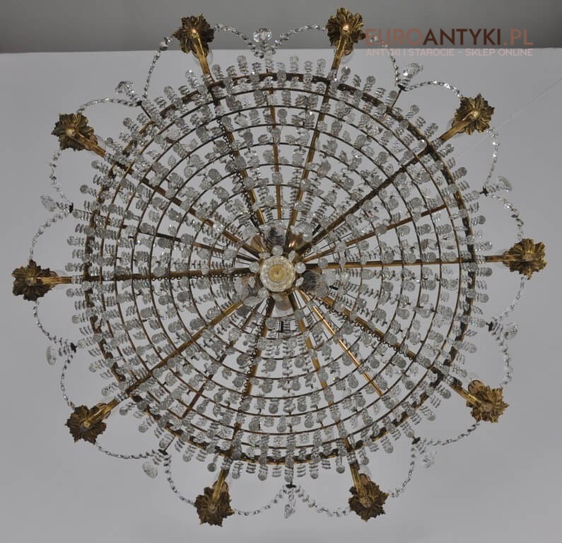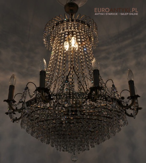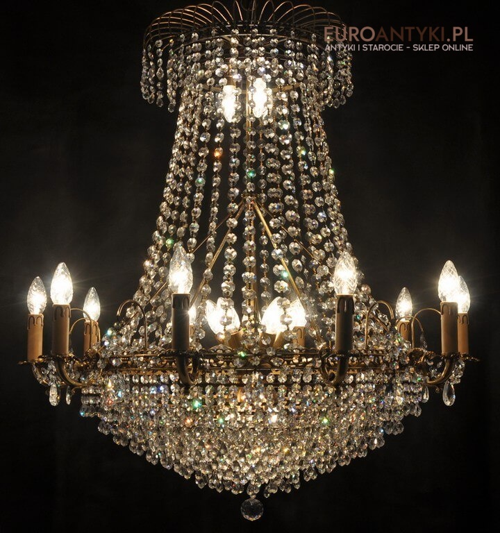 Niezwykle dekoracyjny pałacowy żyrandol wykonany z masywnego brązu i prawdziwych kryształowych zawieszek. KASKADA KRYSZTAŁÓW!!!