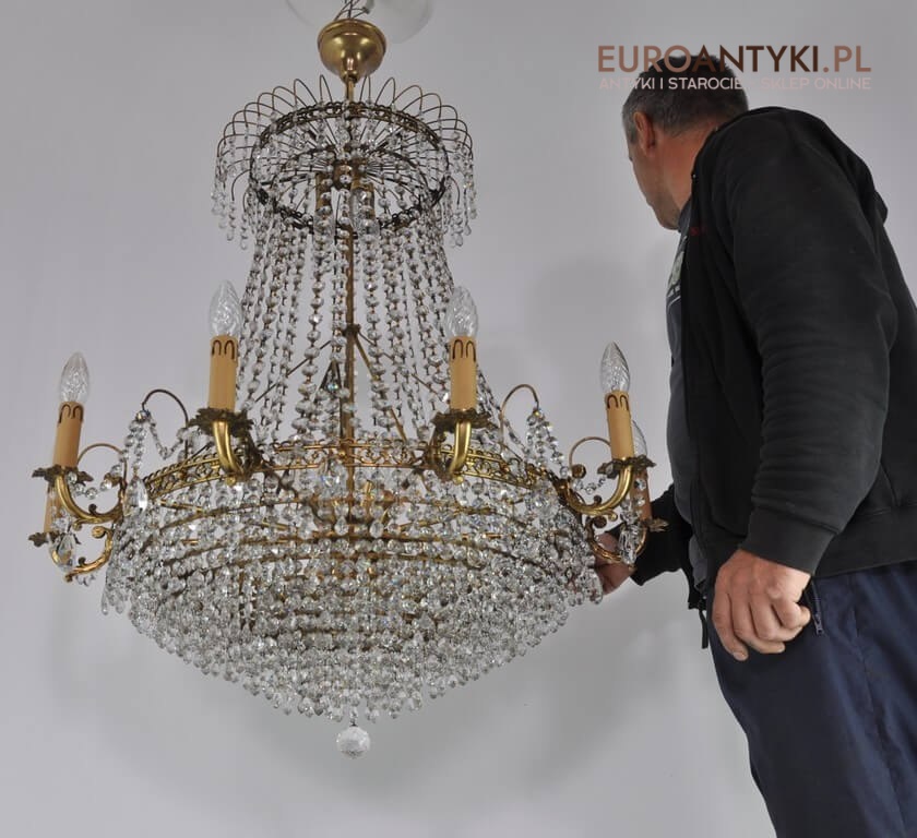 Żyrandol jest bardzo ciężki, wykonany z niespotykaną precyzją i dbałością o detale.
