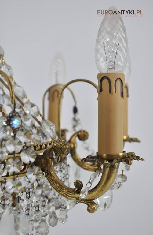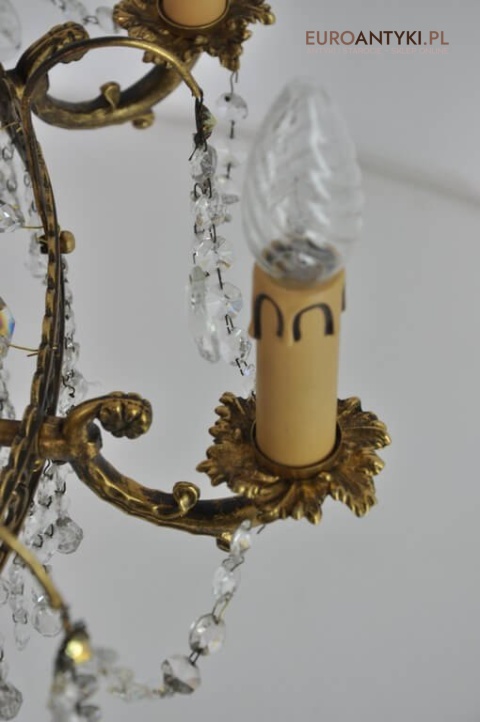 Wewnątrz żyrandola są oryginalne ( 100 letnie ) mosiężne oprawki na żarówki. Gilzy wymieniliśmy na nowe bo stare się rozsypywały.