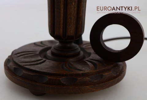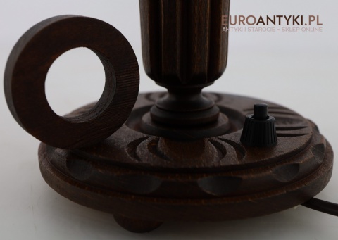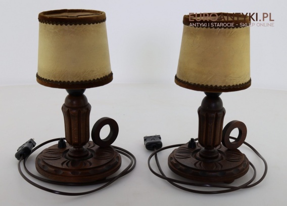 Ta para lamp stołowych z pierwszej połowy XX wieku to przykład kunsztu ręcznego rzeźbienia w drewnie, połączonego z ciepłym, przytulnym oświetleniem. Wykonane z solidnego drewna, każda lampka posiada tekstylne abażurki w dobrym stanie, które dodają im elegancji i subtelnego stylu retro. Oryginalne wykończenie lamp oraz unikatowy, ręcznie rzeźbiony wzór podstawy czynią je idealnym wyborem do stylowych wnętrz, w tym salonów i sypialni urządzonych w stylu vintage lub rustykalnym. Sprowadzone z Francji.