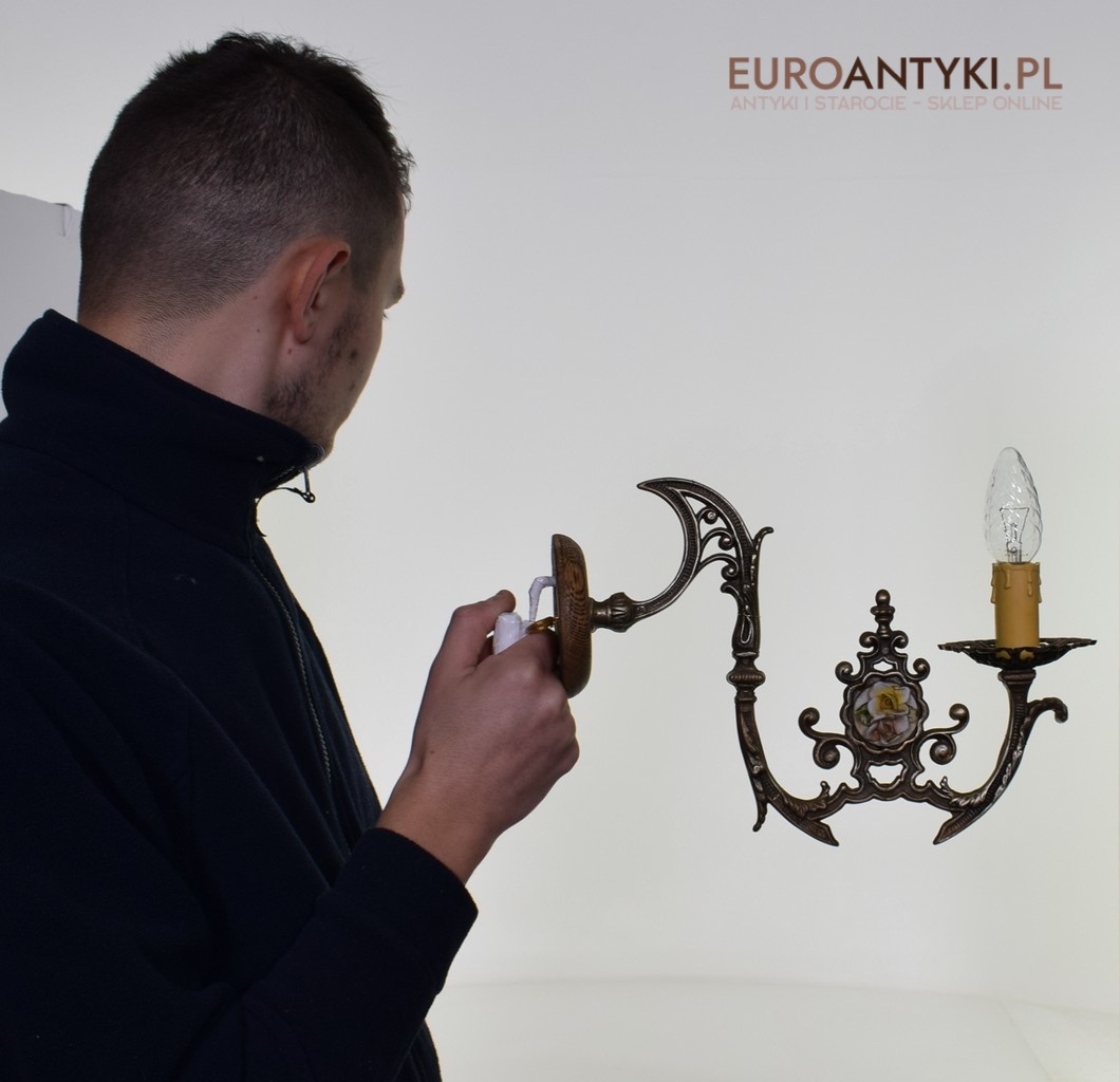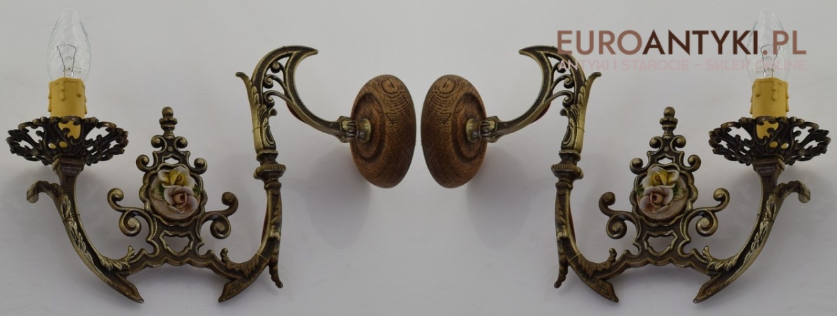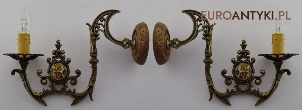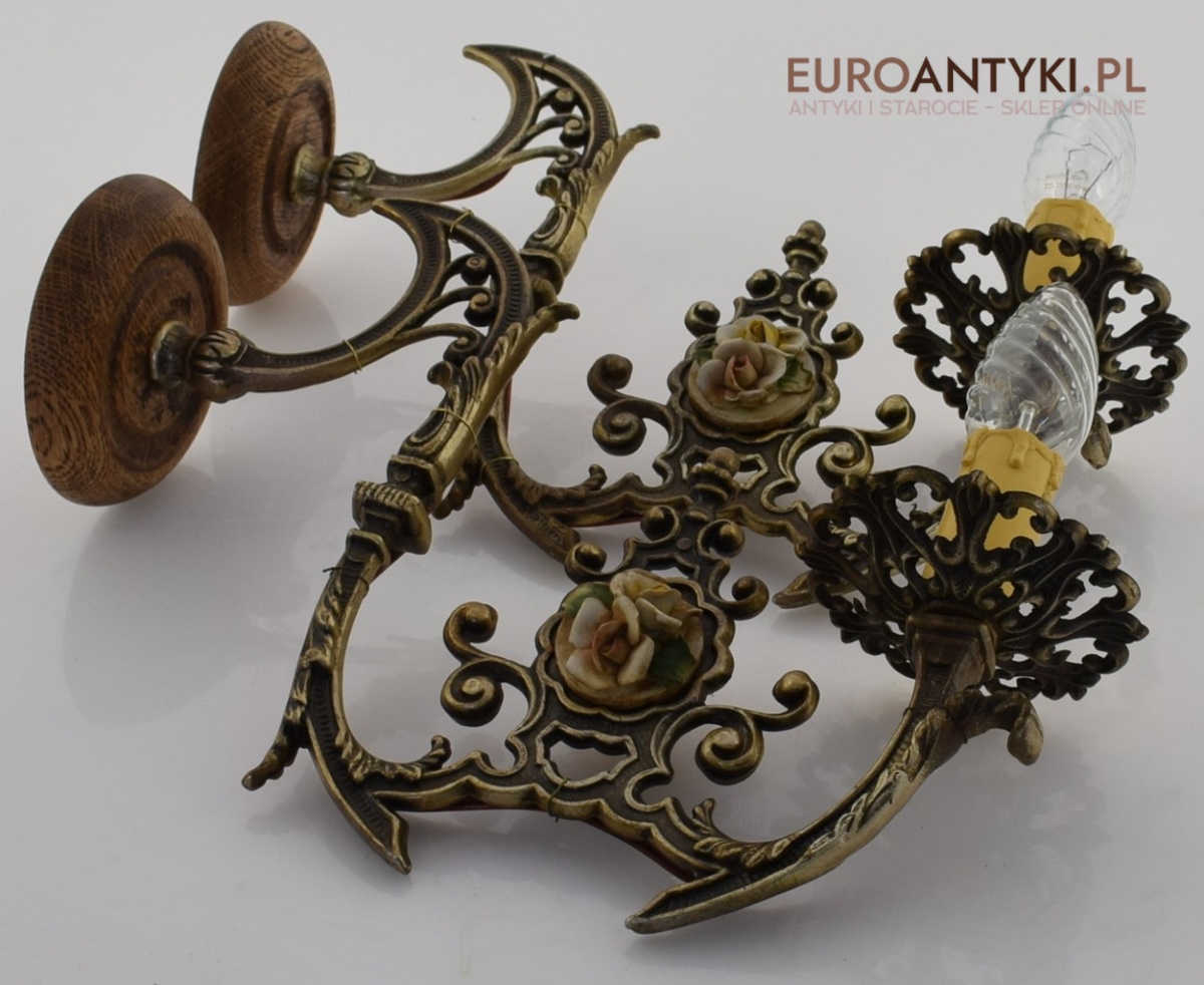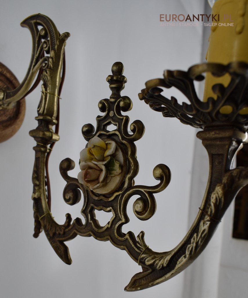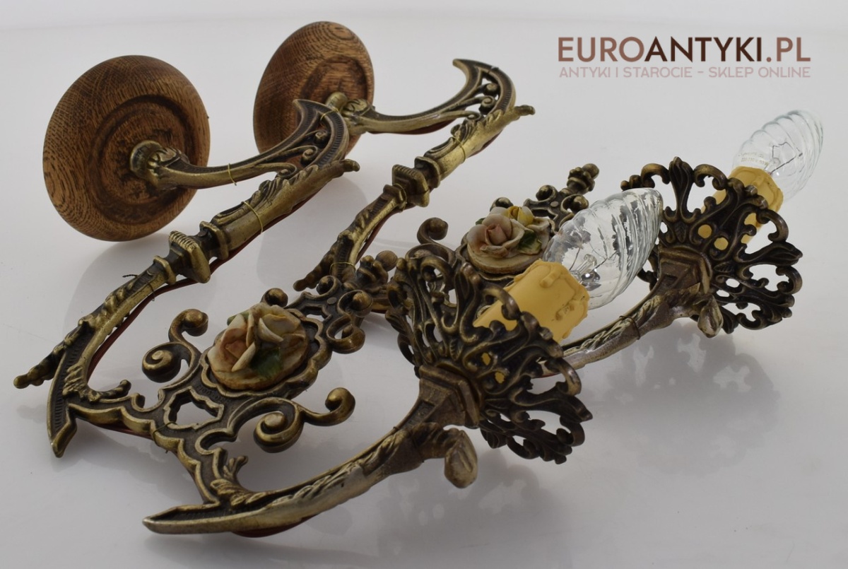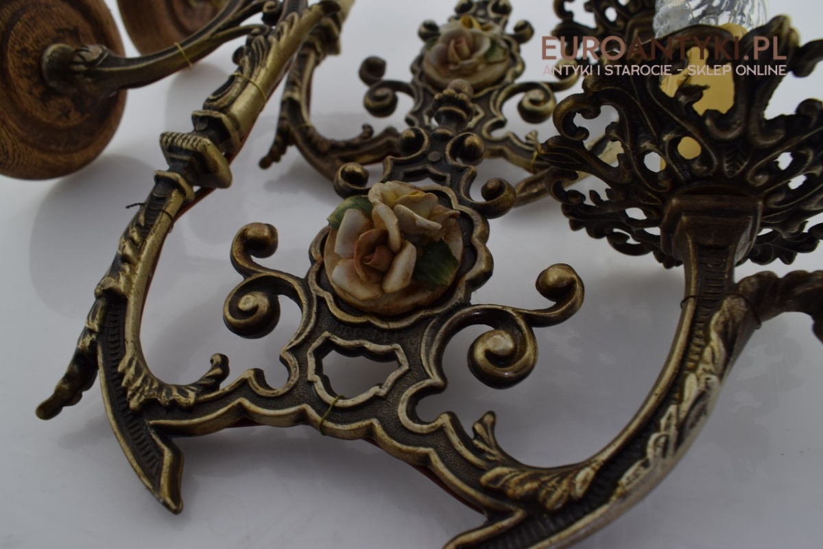 Para kinkietów rustykalnych z różyczkami z dawnych lat.