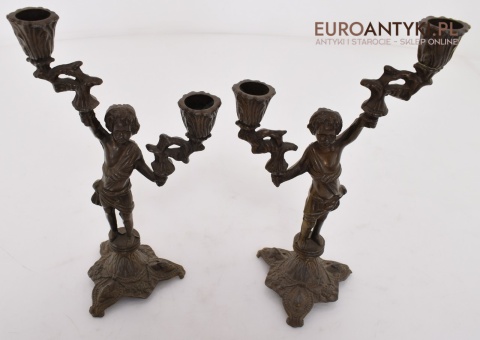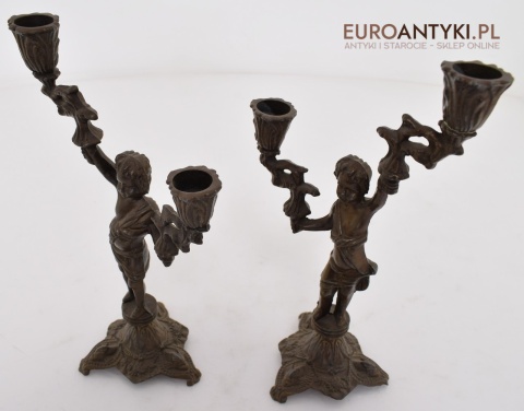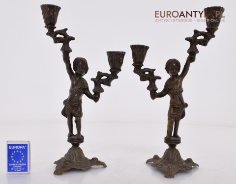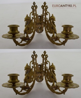 Para pałacowych świeczników vintage z brązu. Lampy antyki.
