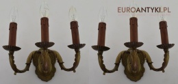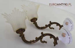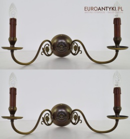 Całość bez uszkodzeń. Przedmiot kompletny, profesjonalnie wyczyszczony. Elektryka sprawna - sprawdzana przez naszego elektryka. Standardowe gniazda elektryczne typu E14. Obecnie można kupić żarówki LED o różnym natężeniu, różnej barwie światła i różnym wyglądzie. Nawet mała żarówka może być dużej mocy i nie będzie pobierać wielu watt, przez co nie przegrzewa i nie uszkodzi kabli elektrycznych. Wszystkie lampy wysyłamy bez żarówek. Żarówki tego typu są łatwo dostępne w sklepach elektrycznych lub w internecie.