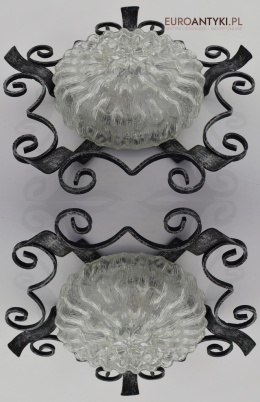 Sprowadzone z Francji, pochodzą z około 1970 roku. Wykonane z 100% z metalu + szklane klosze ( kominy ) w idealnym stanie.