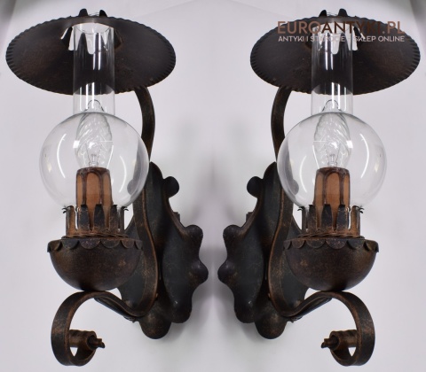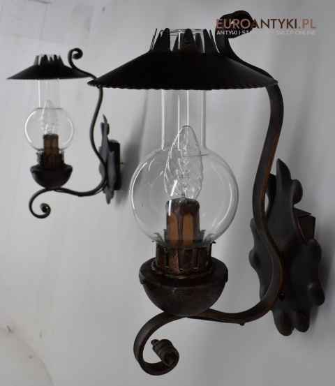 2 kinkiety w stylu starych lamp naftowych w klimacie cottage core / rustyk.