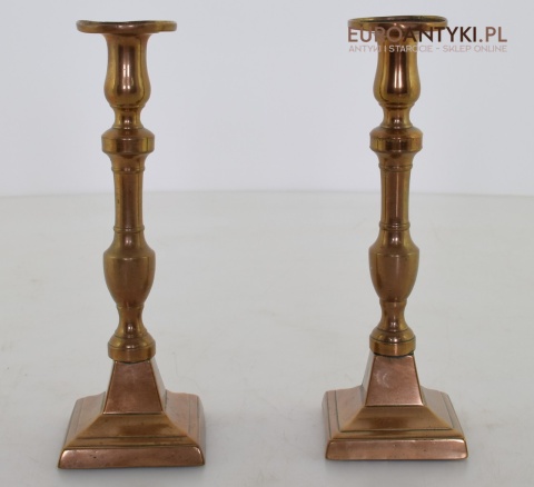 Para zabytkowych świeczników mosiężnych. Sklep z antykami.