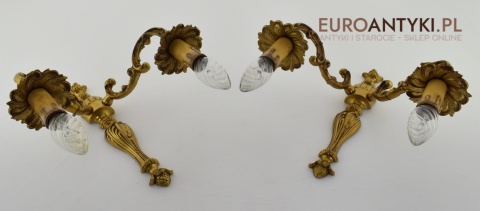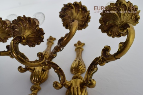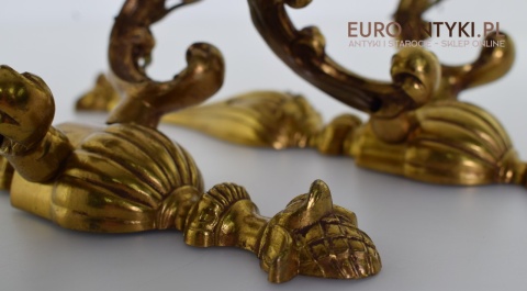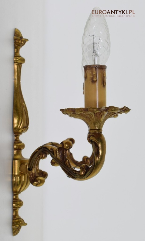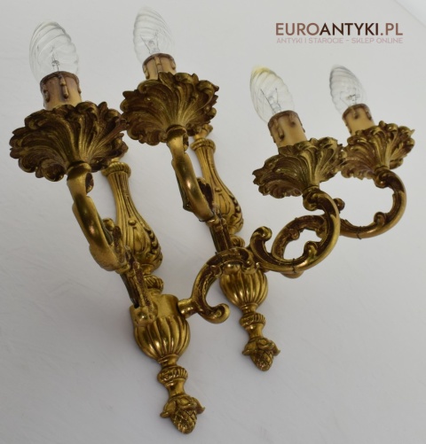 Para złotych antycznych kinkietów barokowych w zamkowym stylu