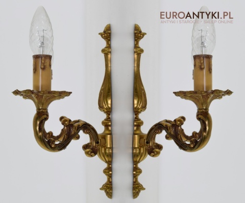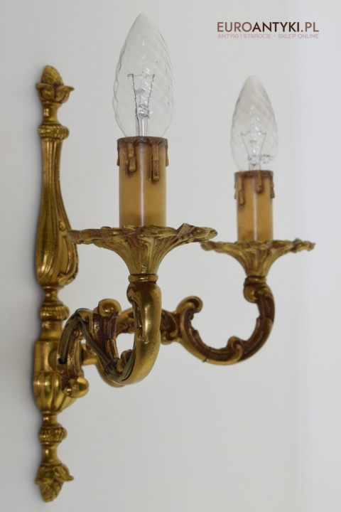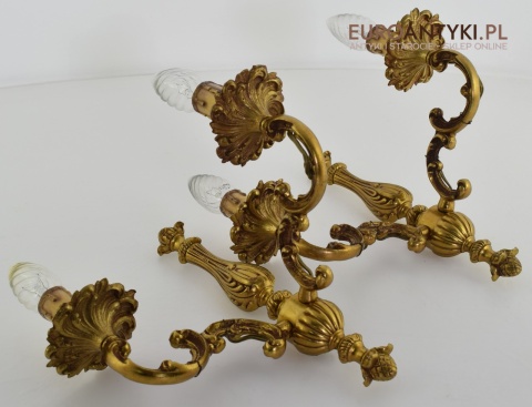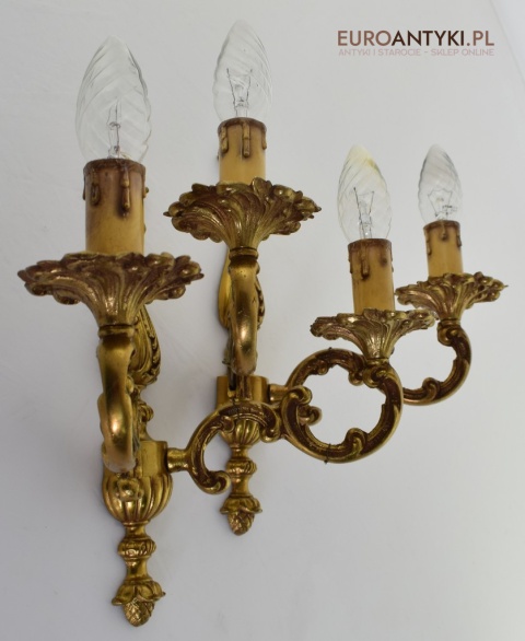 2 bogate kinkiety barokowe w kolorze starego złota - lampy retro/vintage