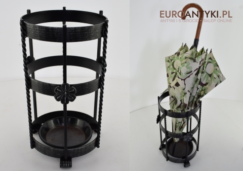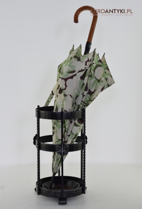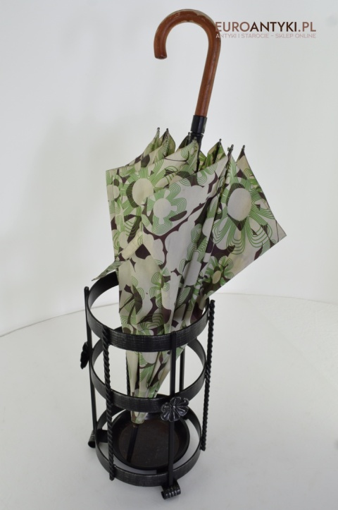 Stojaki na parasole były niegdyś standardowym elementem wyposażenia eleganckich domów, szczególnie w Europie. Służyły nie tylko do przechowywania parasoli, ale również jako element dekoracyjny, świadczący o dobrym smaku właścicieli. Stojaki z masywnego metalu, takie jak ten, są dziś rzadkością, ponieważ współczesne modele często są produkowane z lżejszych i mniej trwałych materiałów.