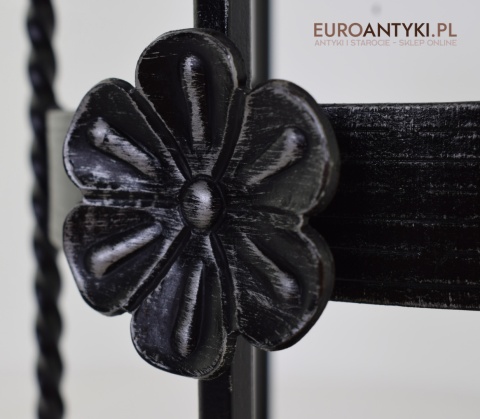 Dekoracyjne elementy, takie jak skręcone metalowe pręty i ozdobne kwiaty, dodają mu uroku i elegancji. Czarno-srebrny kolor stojaka sprawia, że jest uniwersalny i pasuje do każdego stylu wnętrza, od klasycznego po nowoczesny.