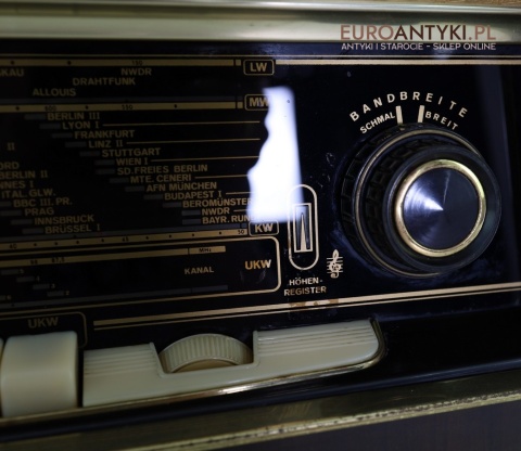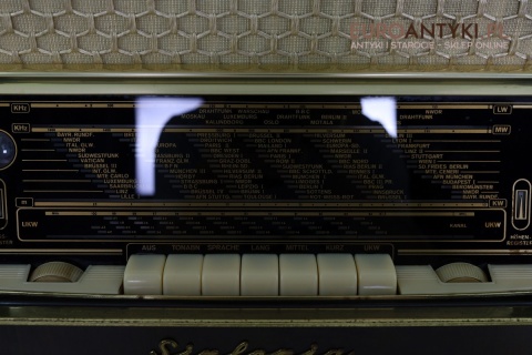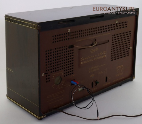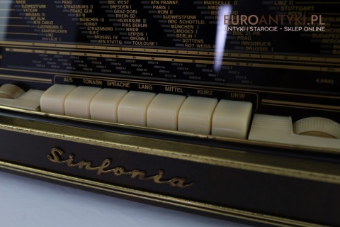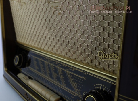 Model Graetz Sinfonia 4R/221 Raumklang-Spitzensuper to przykład najwyższej klasy niemieckiej techniki lat 50., z funkcją „Raumklang” – przestrzennego dźwięku stereo, co w tamtych czasach było innowacją. Oryginalne przyciski i skala z nazwami europejskich stacji radiowych to elementy, które dodają temu urządzeniu wyjątkowego klimatu i historycznej wartości.