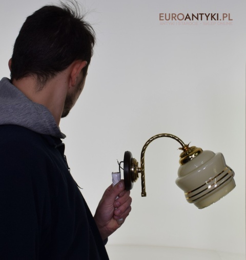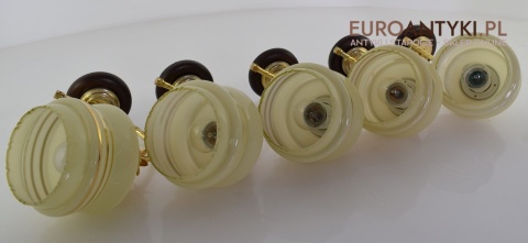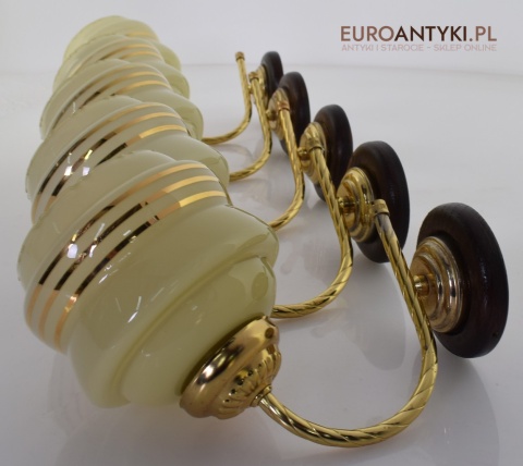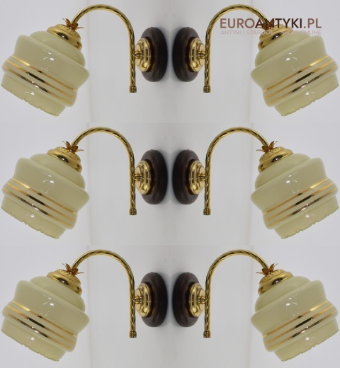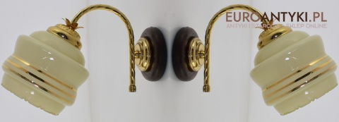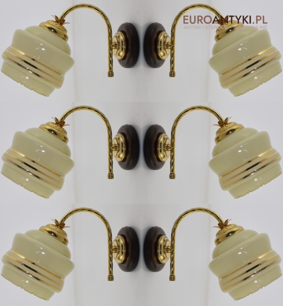 Rasowe kinkiety rustykalne z żółtymi kloszami.
