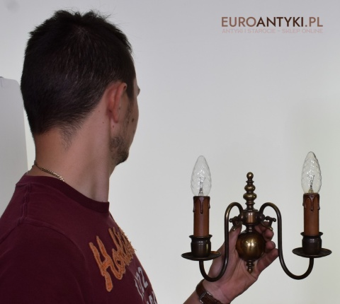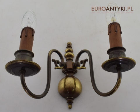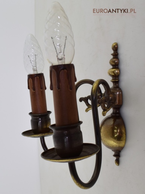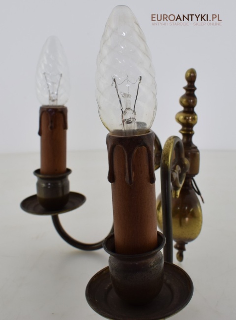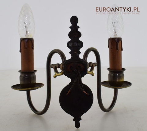 Retro kinkiet dwuramienny z brązu. Stare lampy.