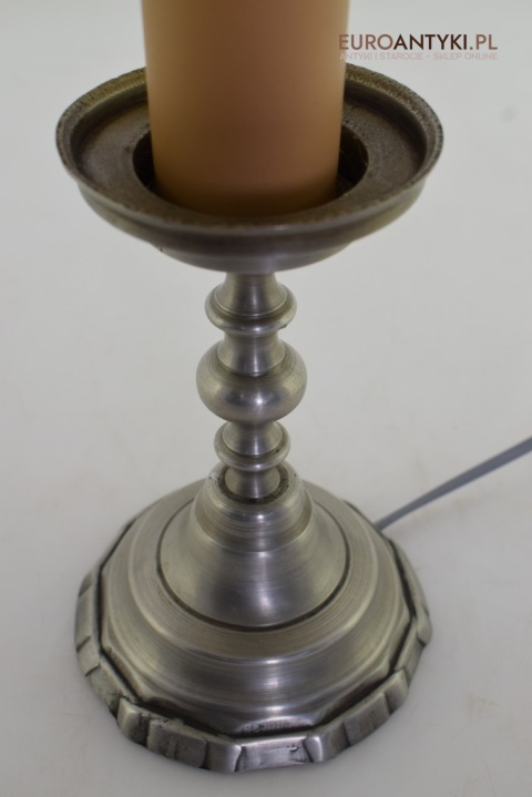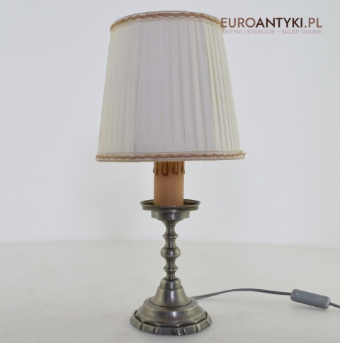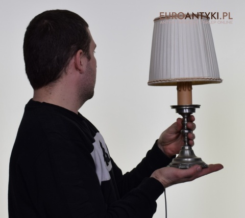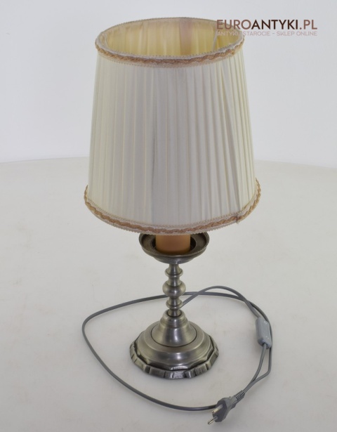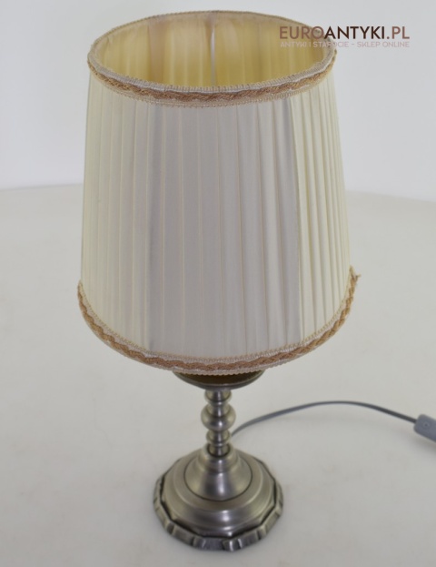 Srebrna nostalgiczna lampka na stolik.