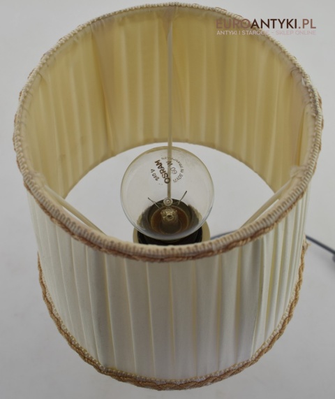 Całość bez uszkodzeń. Kompletna. Elektryka sprawna. Standardowe gniazdo typu E27 o maksymalnej mocy 60 watt. Wszystkie lampy wysyłamy bez żarówek. W dzisiejszych czasach można kupić żarówki LEDowe o różnej barwie światła, o różnym natężeniu i o różnym kształcie. Więc tak na prawdę malutka żarówka może być potężnej mocy i nie pobierać wielu wattów, przez co nie spali lub nie przegrzewa kabli elektrycznych.