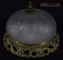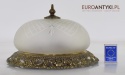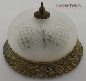 Sprowadzona z Francji. Pochodzi z około 1970 roku. Wykonana z mosiądzu + gruby szklany ręcznie szlifowany klosz w idealnym stanie.