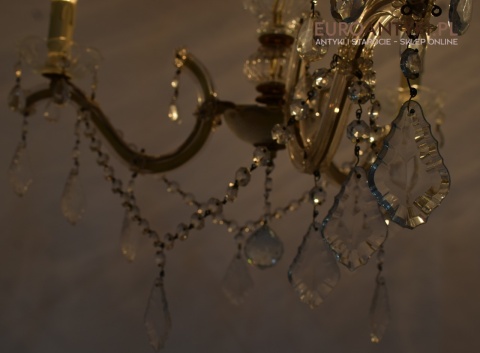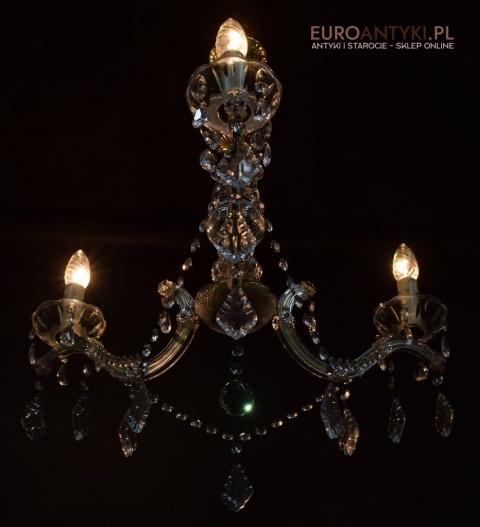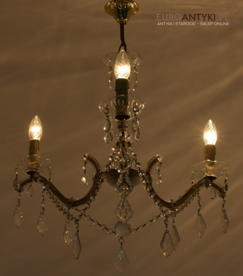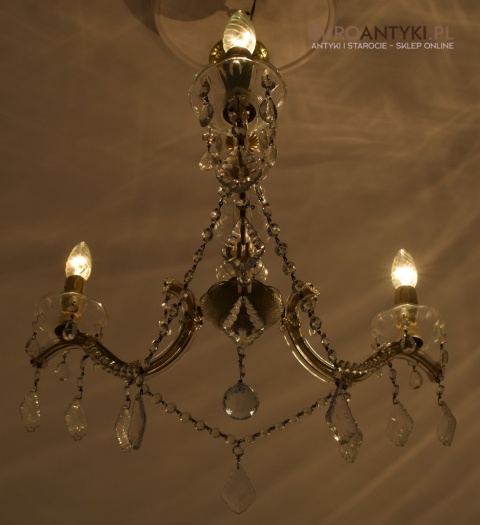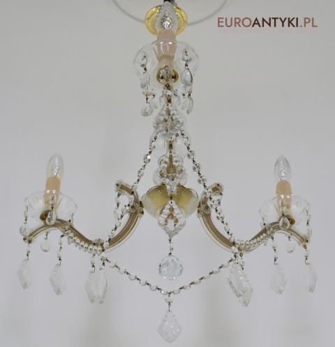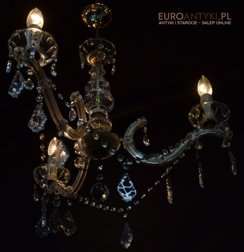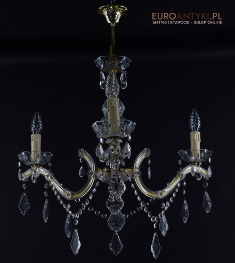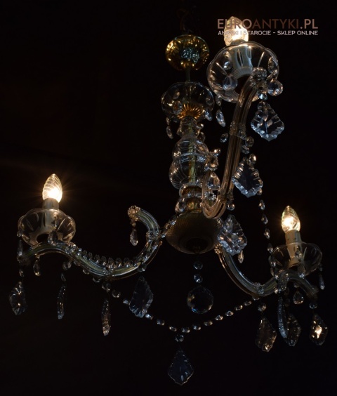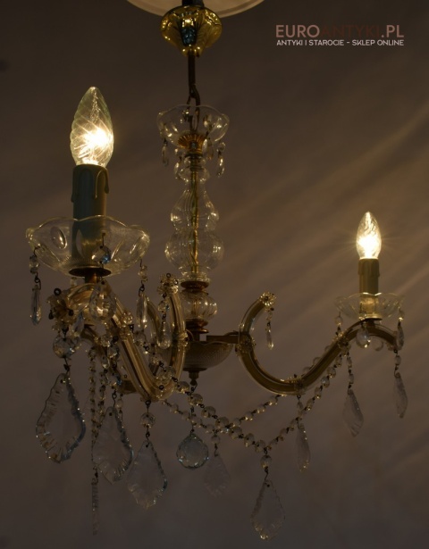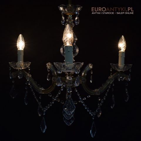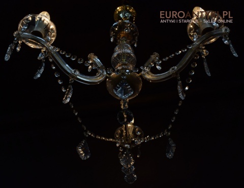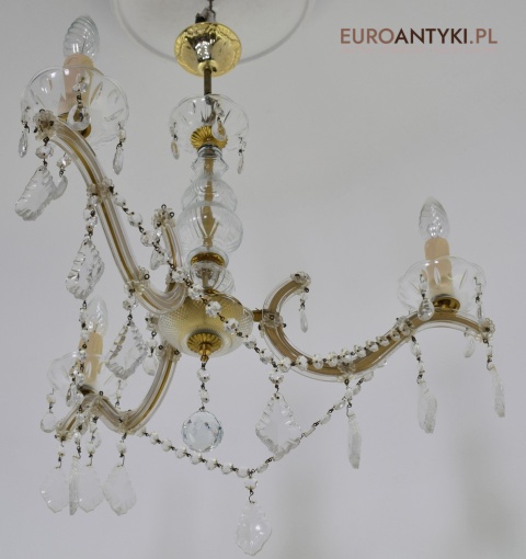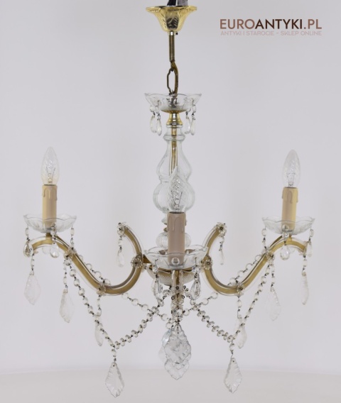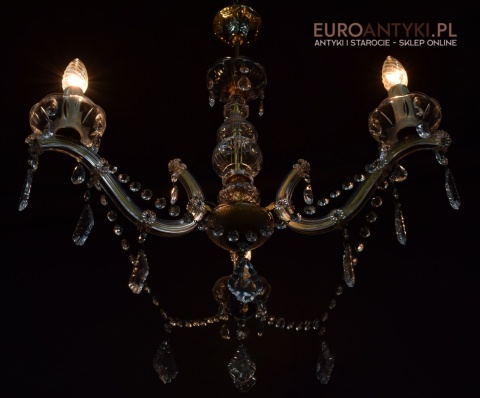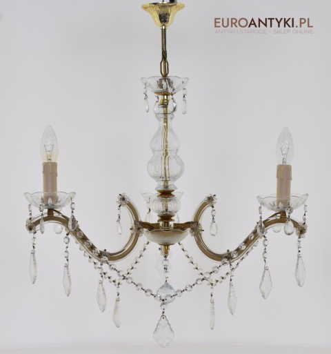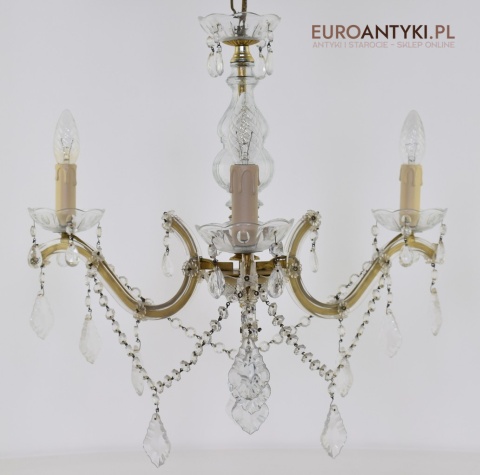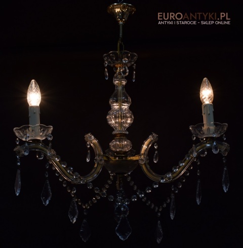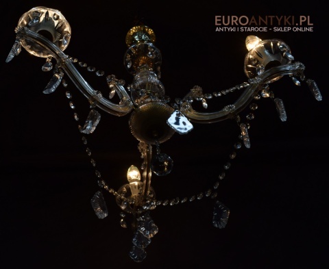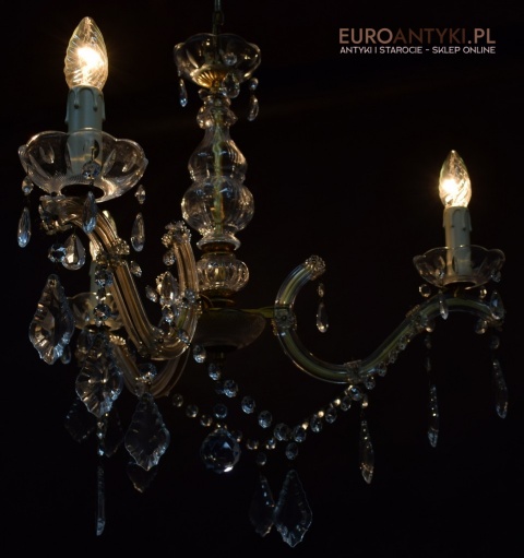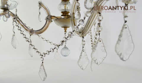 Ślicznie zachowany stary żyrandol Maria Teresa z drugiej połowy XX wieku - szkło i kryształ