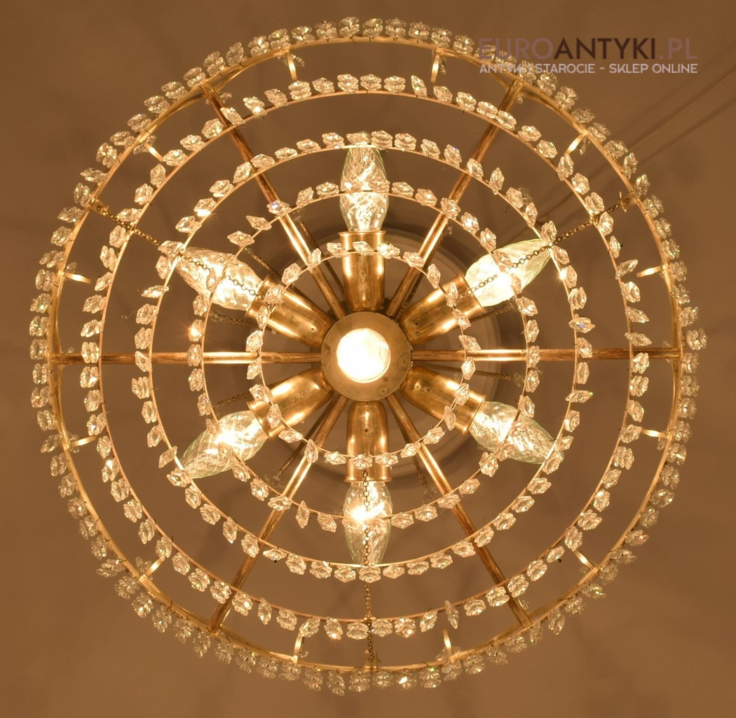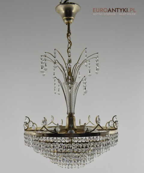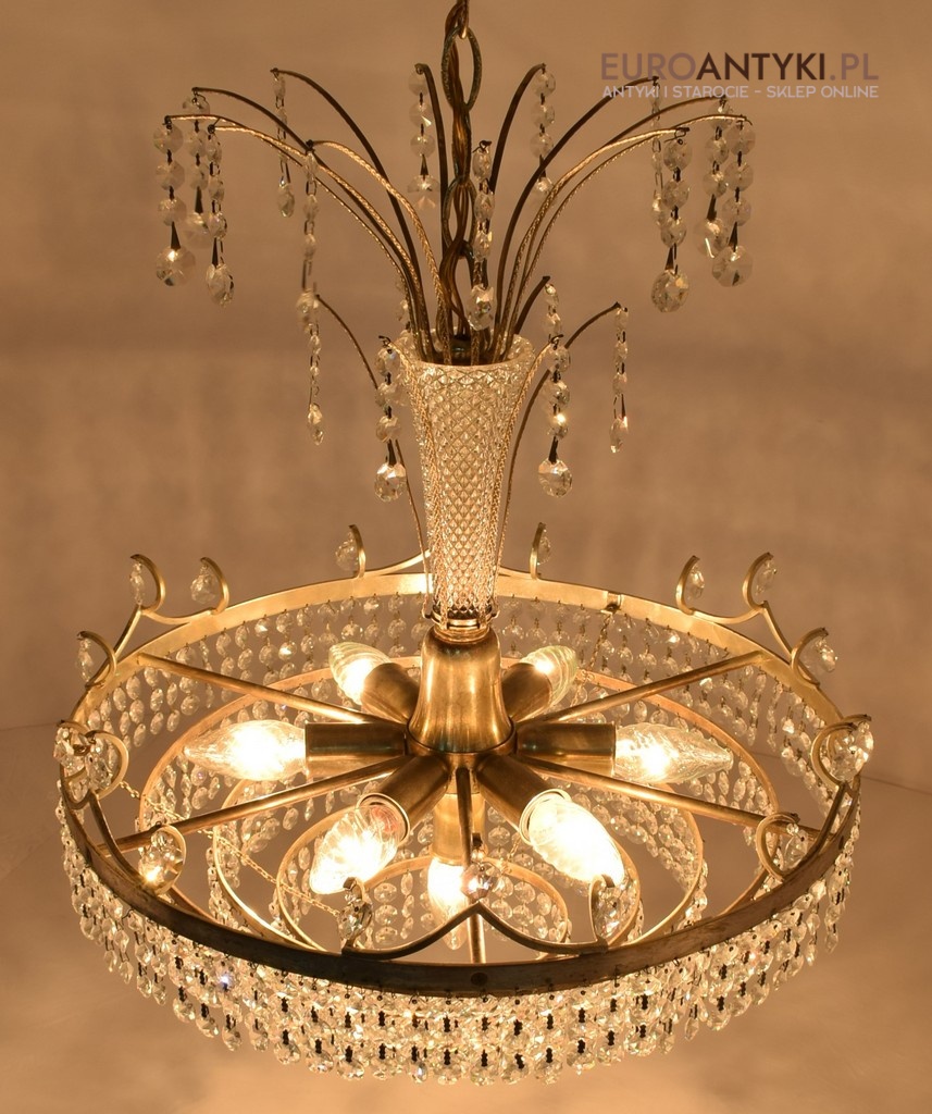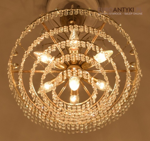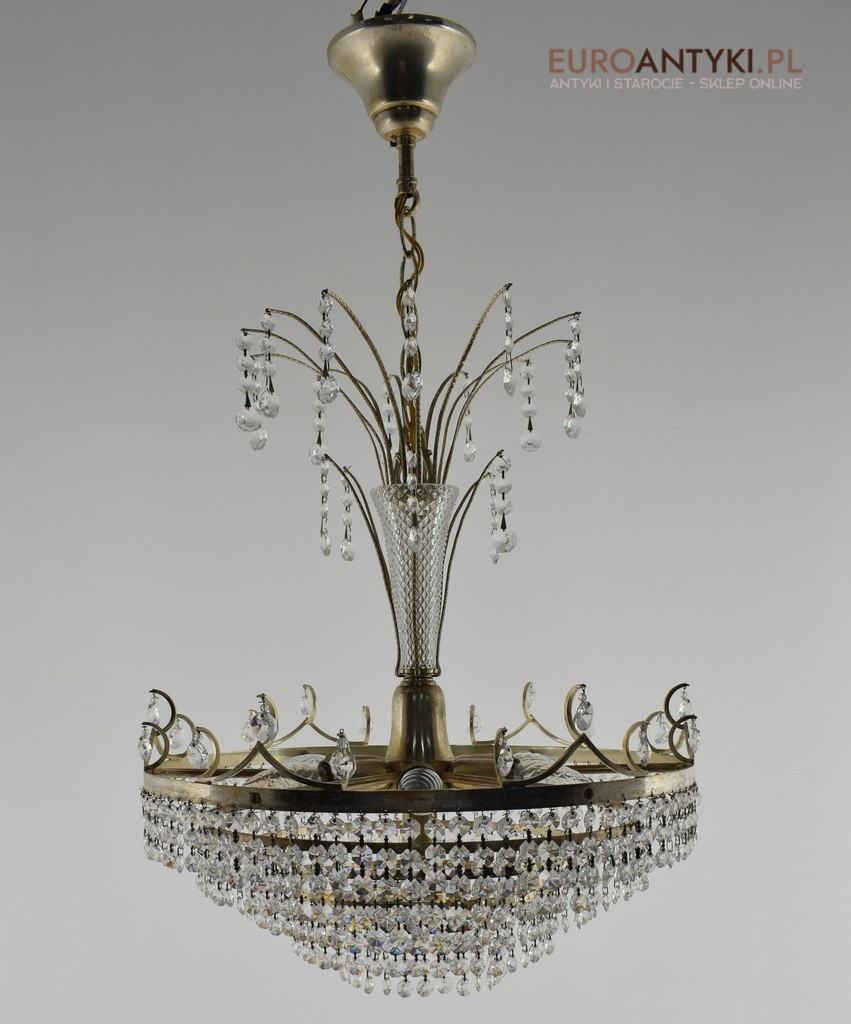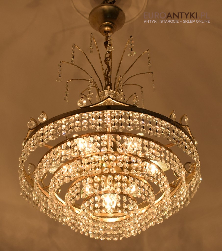 Kryształowy żyrandol w stylu retro, vintage z lat 1940.