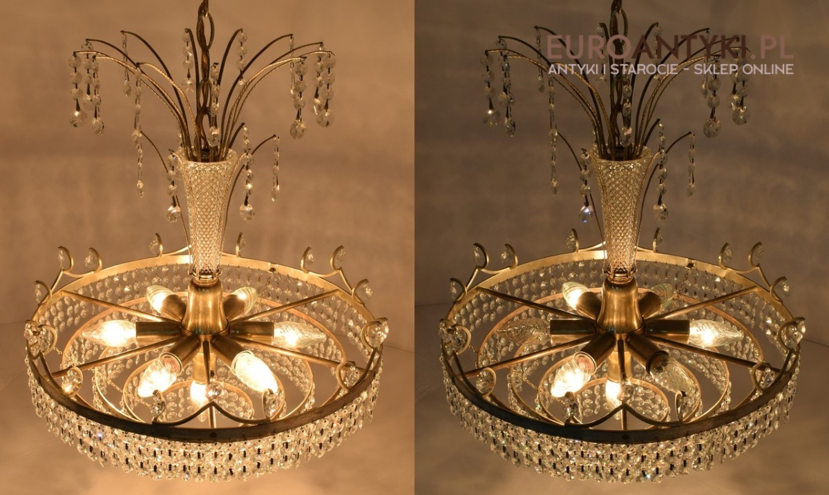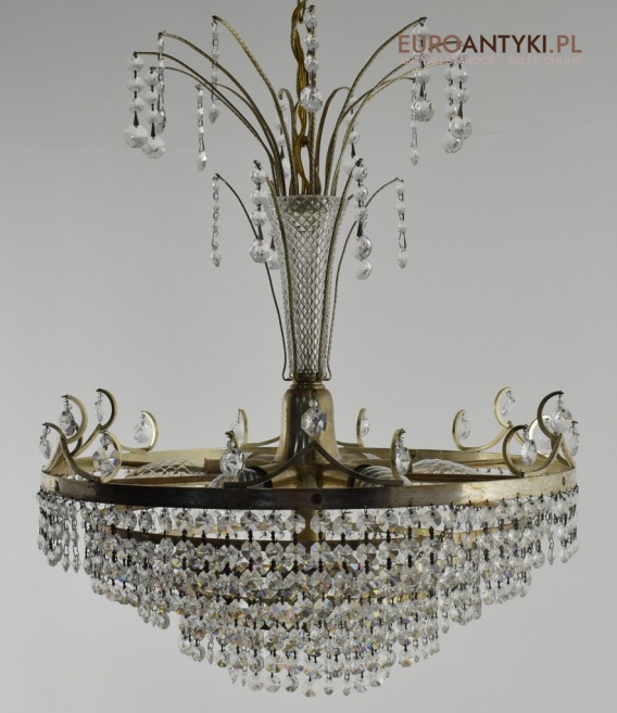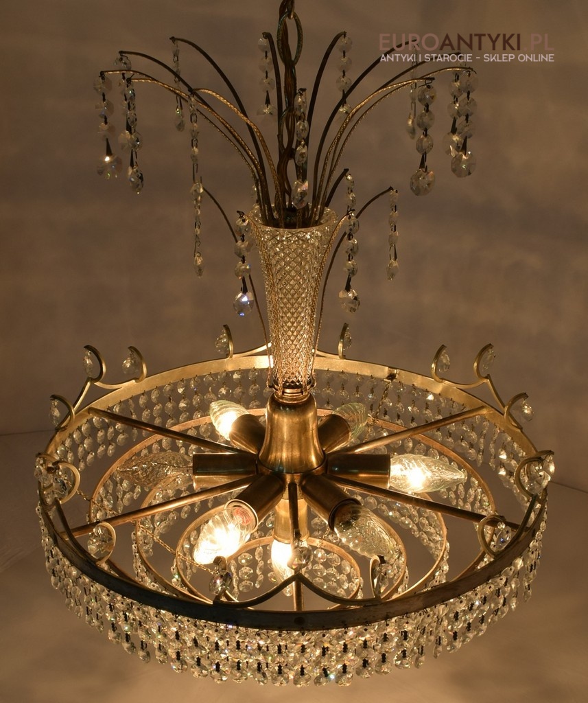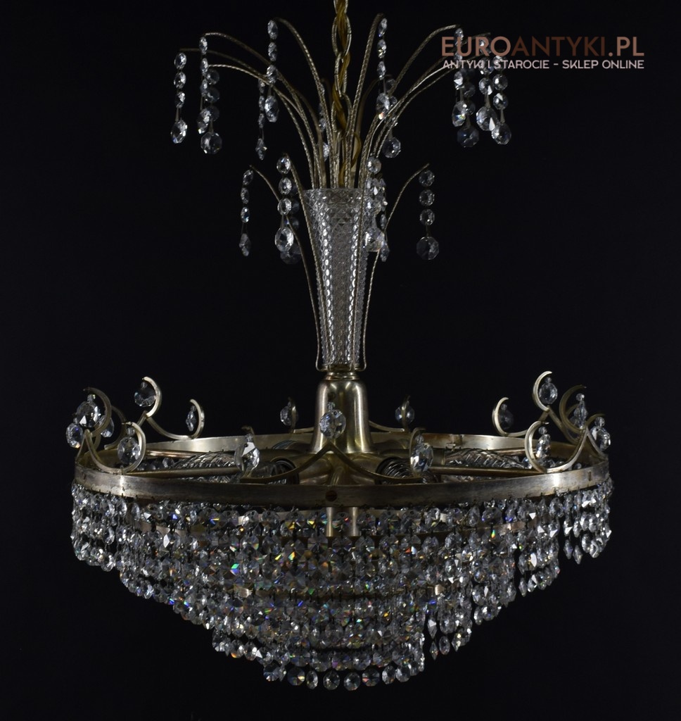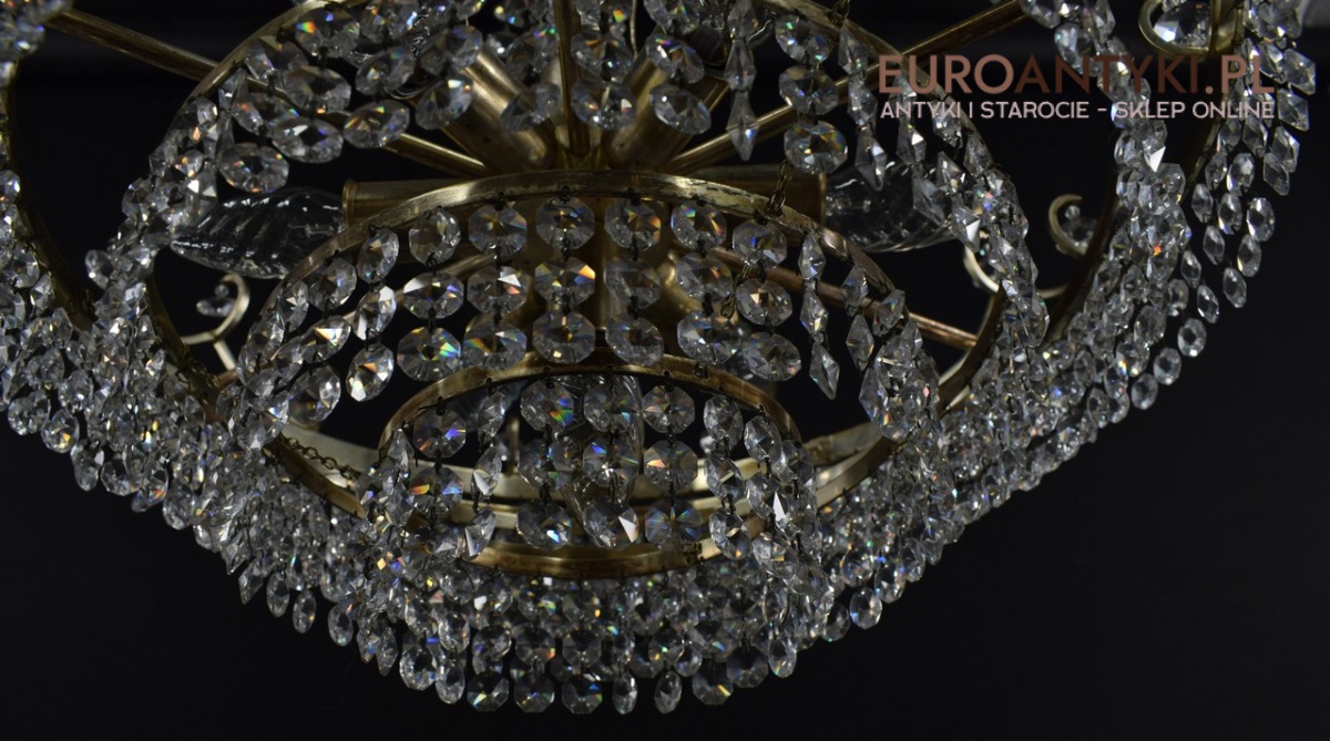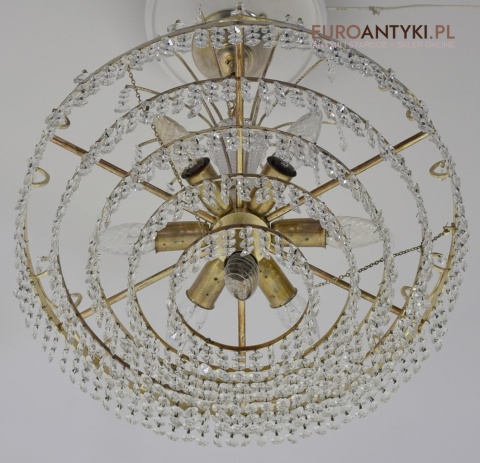 Kryształowy żyrandol w stylu retro, vintage z lat 1940.