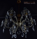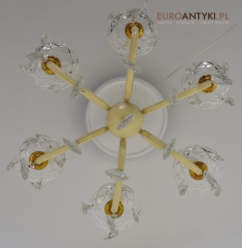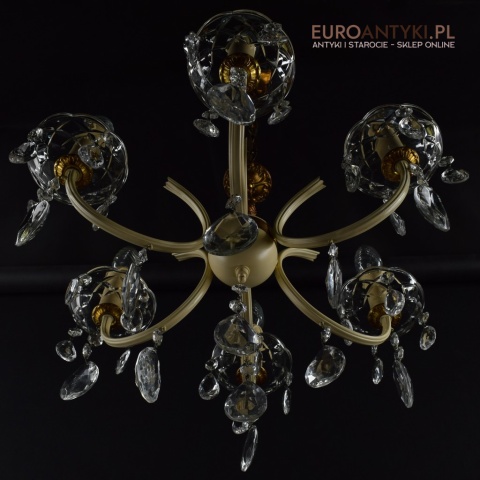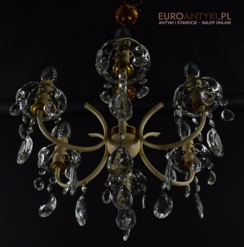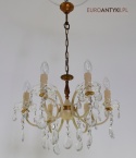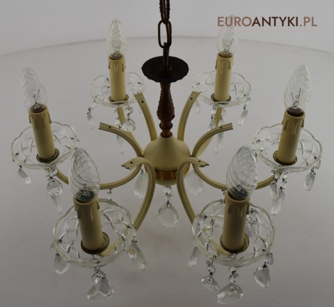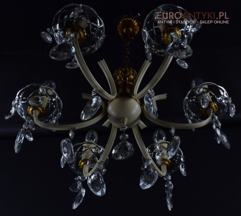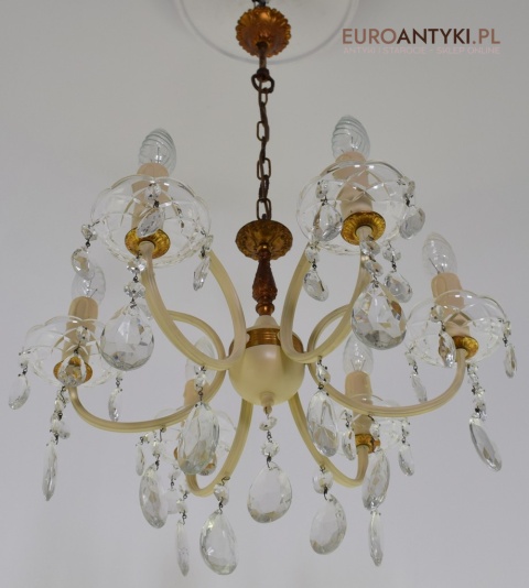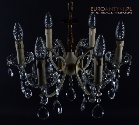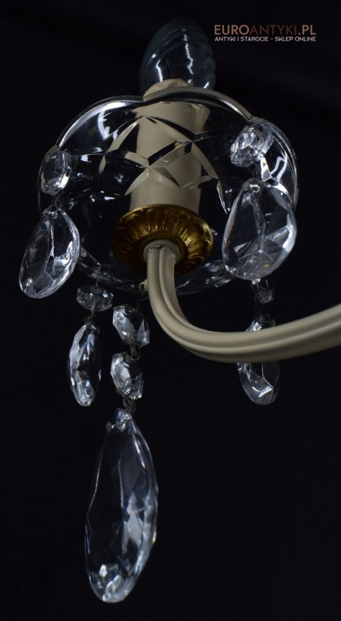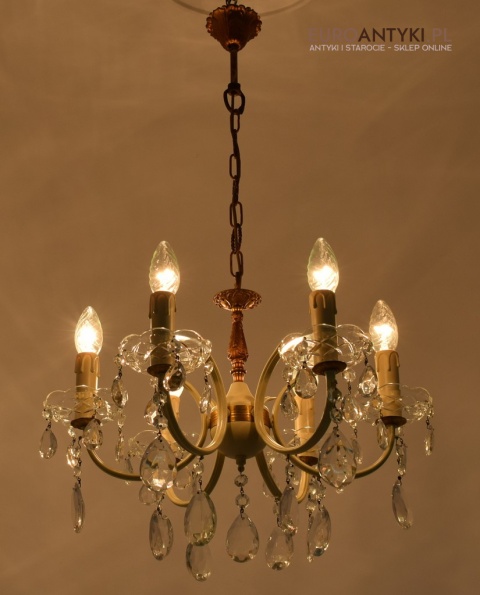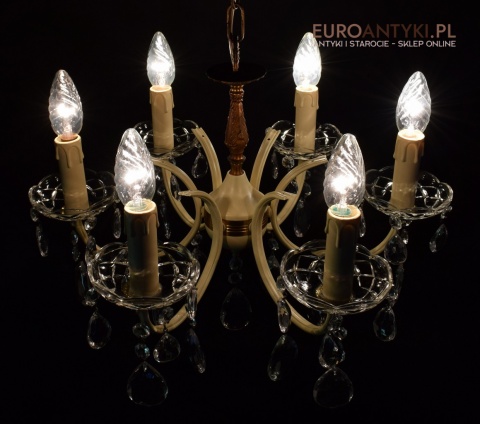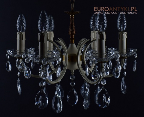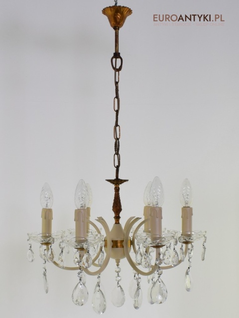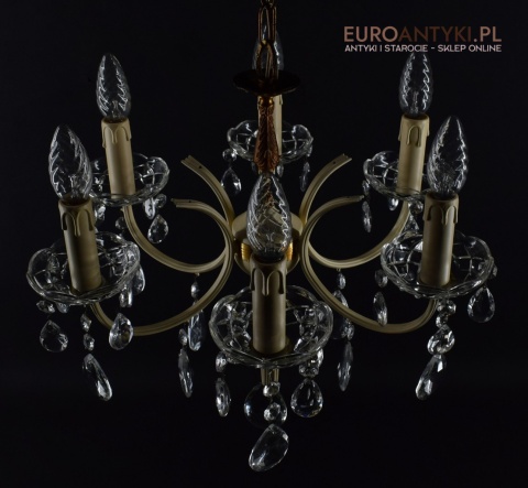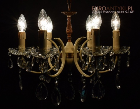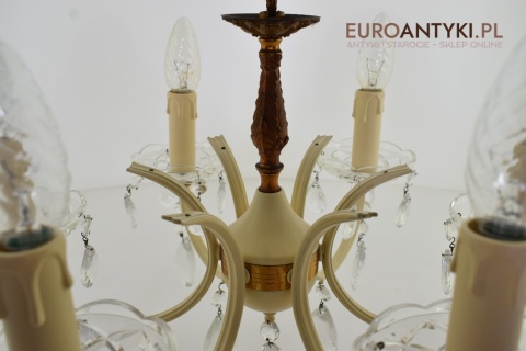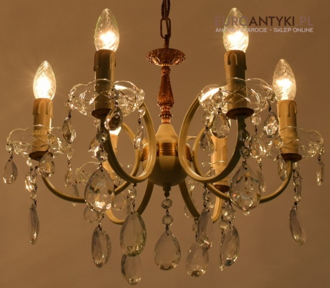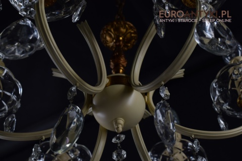 Retro żyrandol z kryształkami w jasnym kremowym kolorze