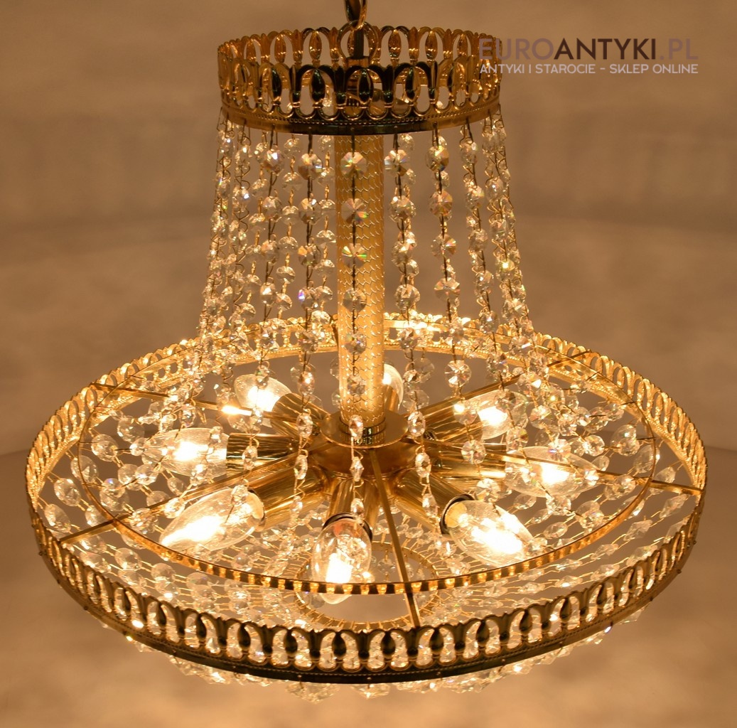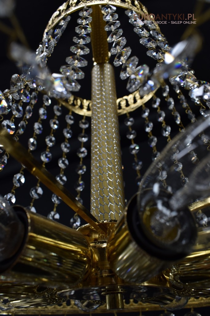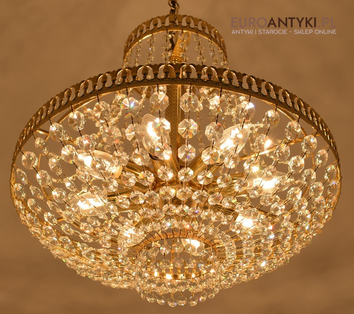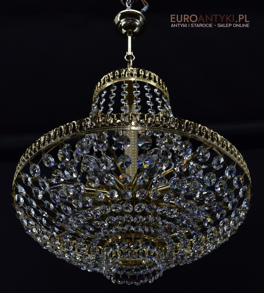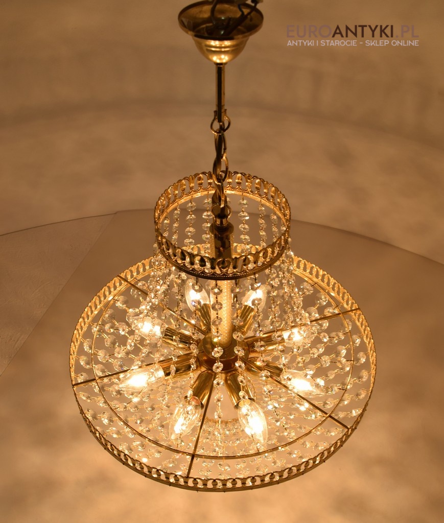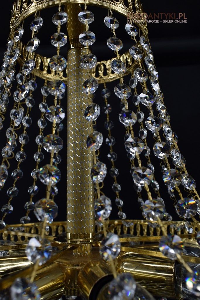 Rewelacyjny żyrandol mosiężny z kryształami.