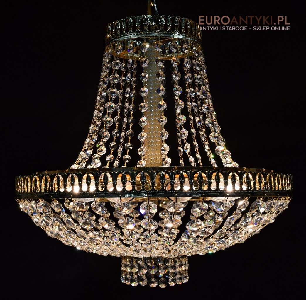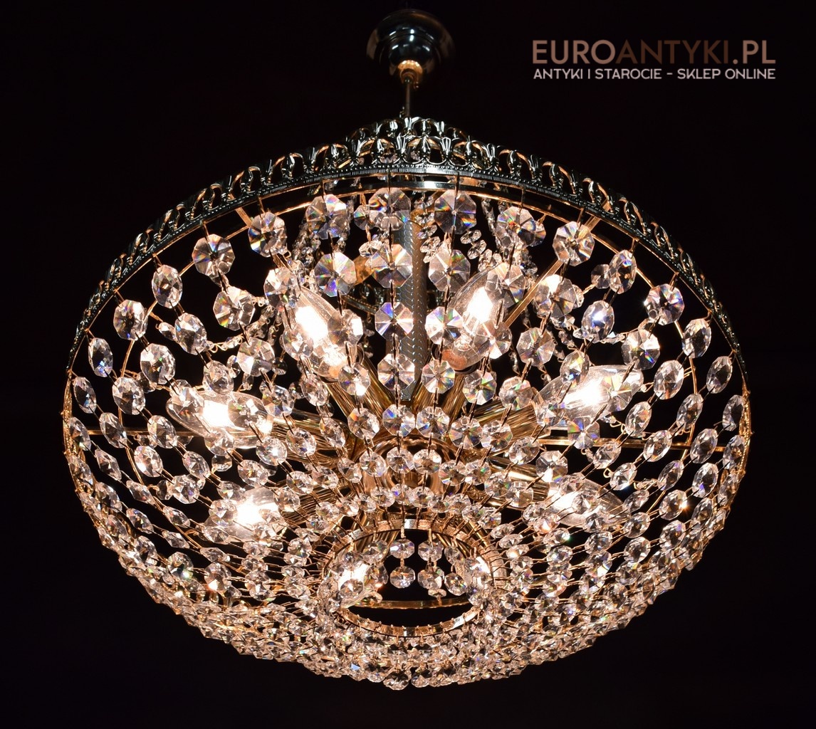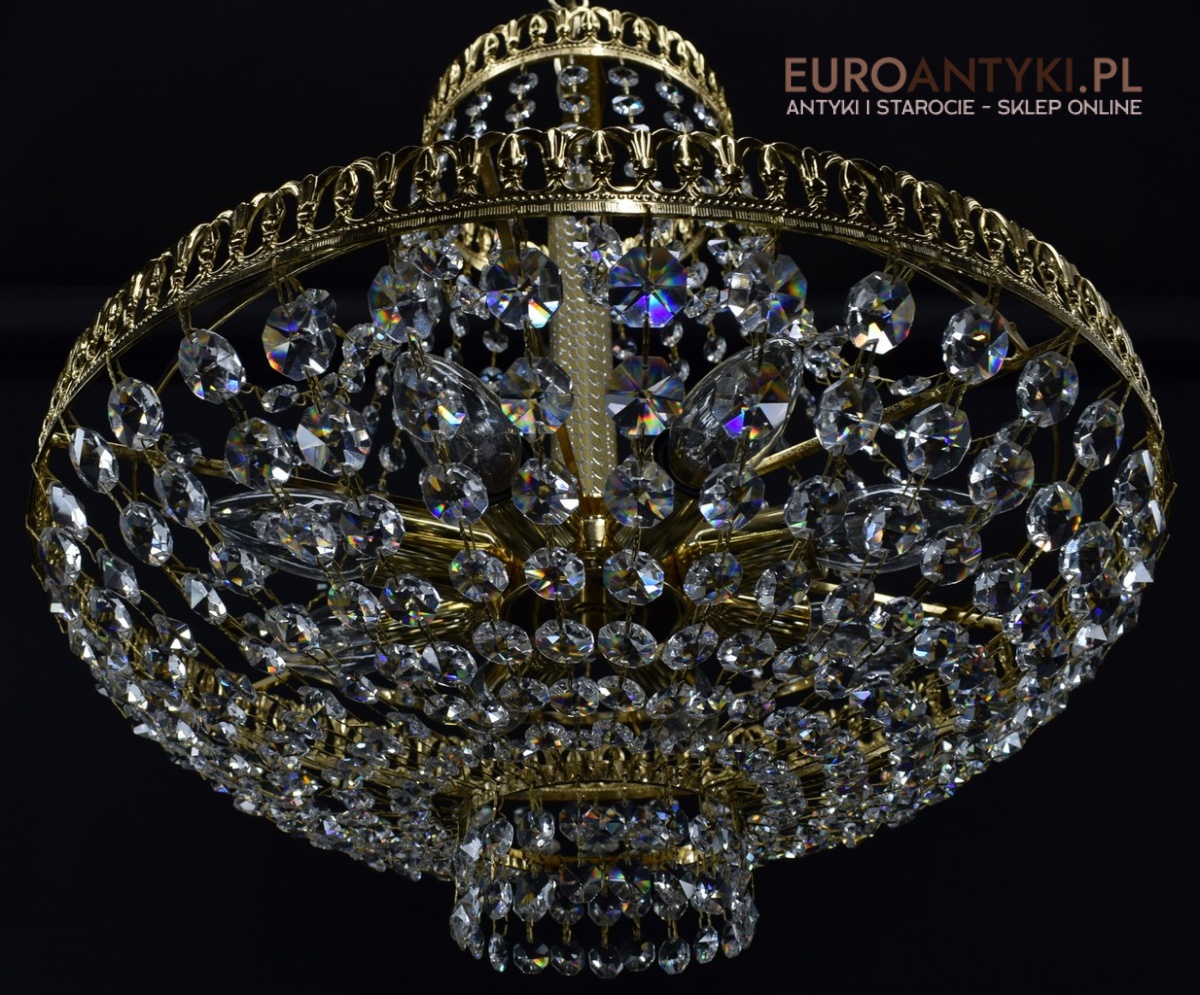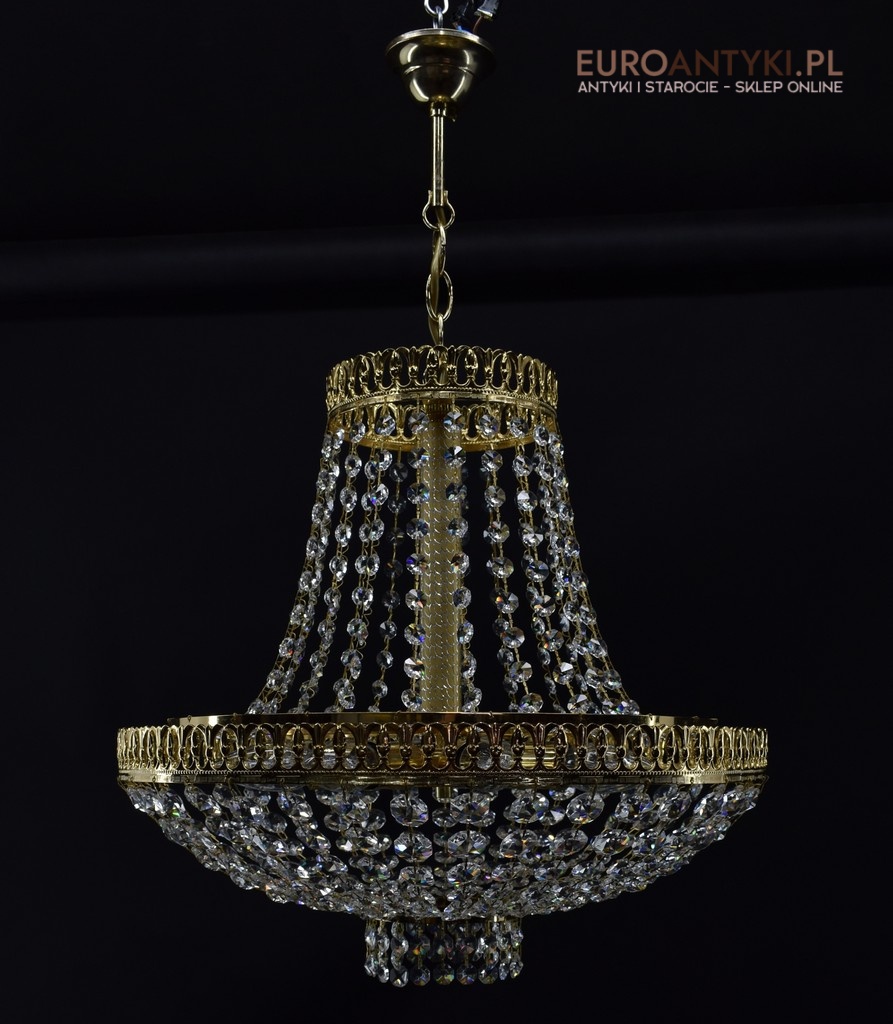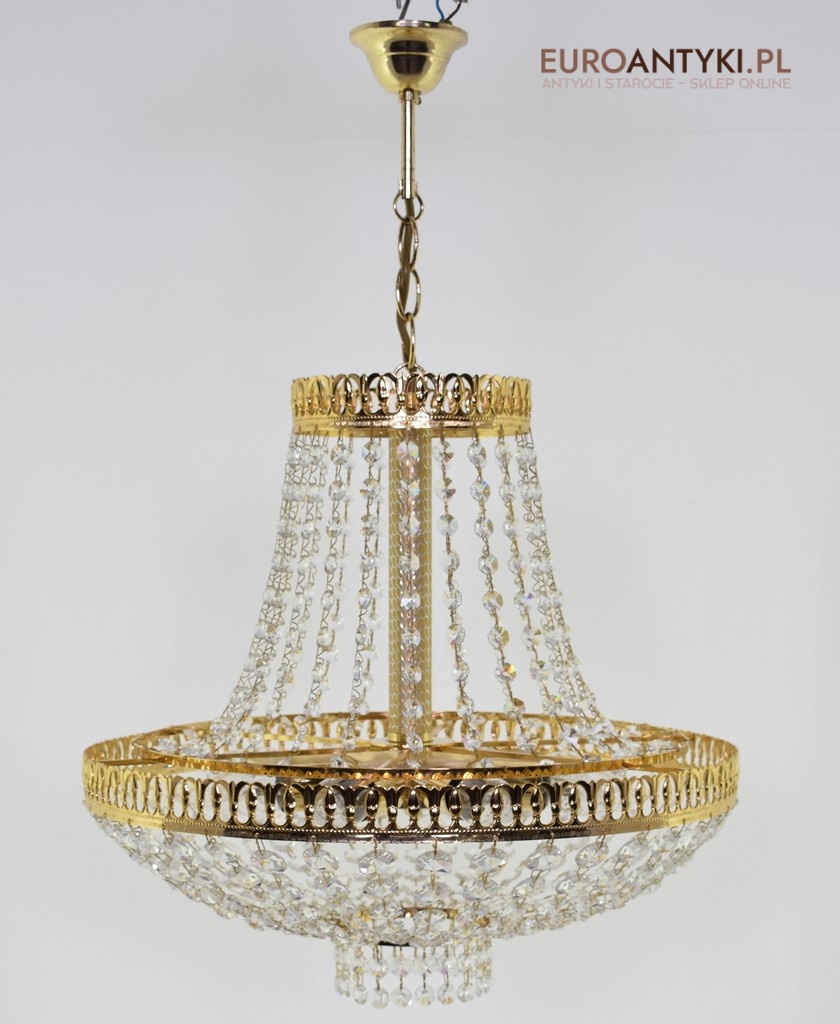Rewelacyjny żyrandol mosiężny z kryształami.