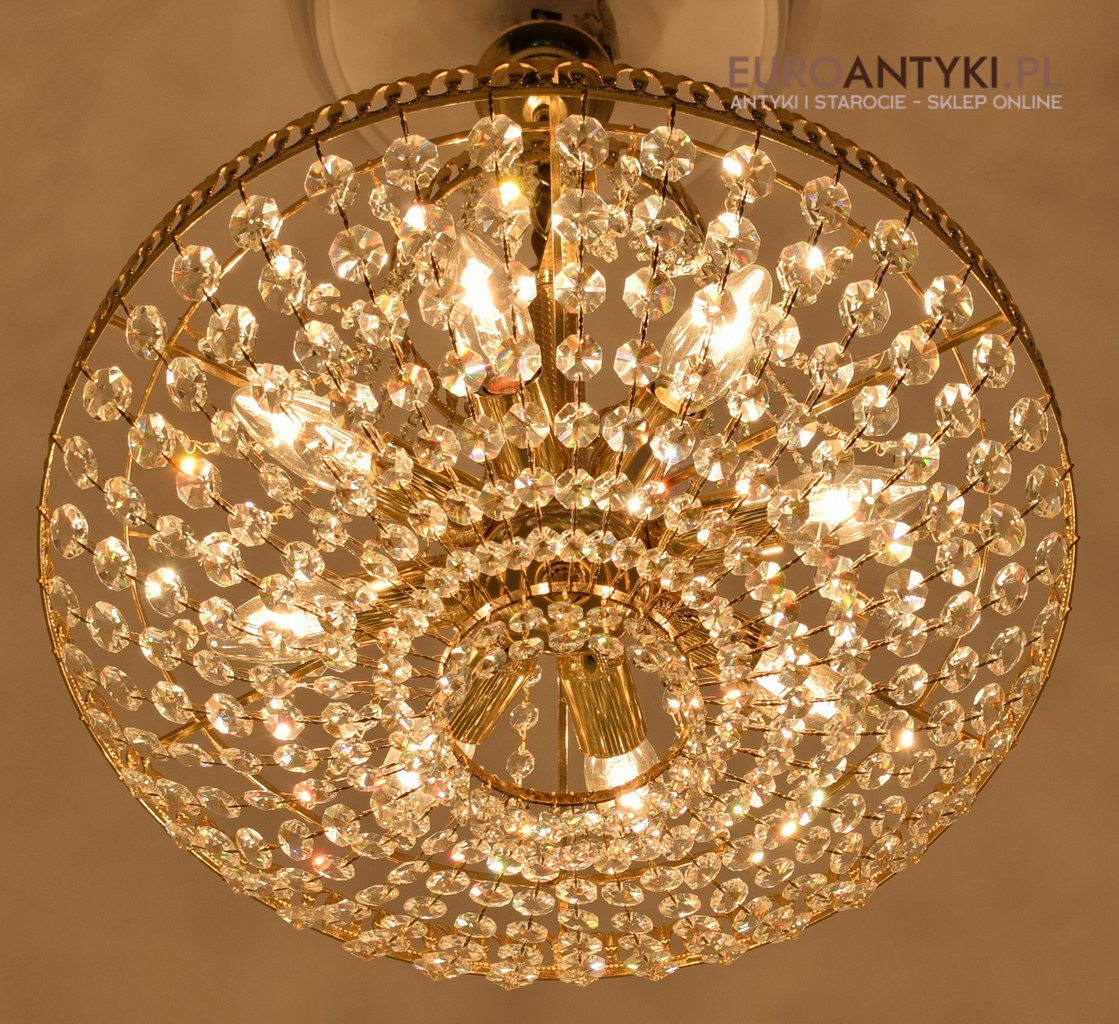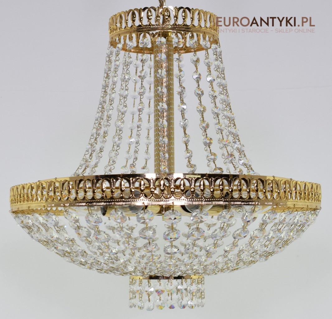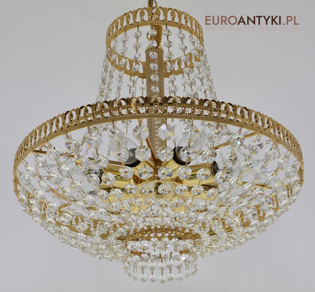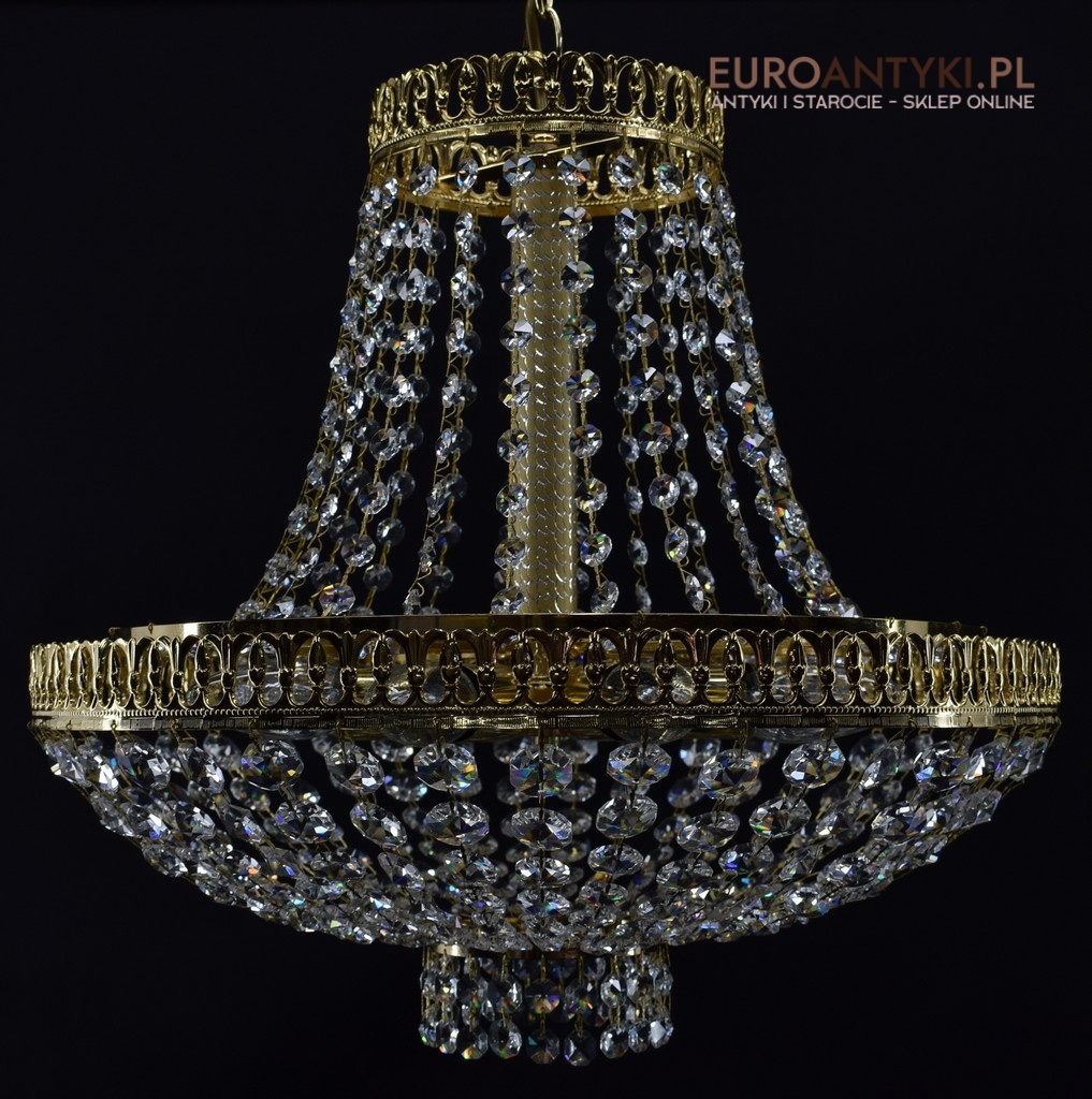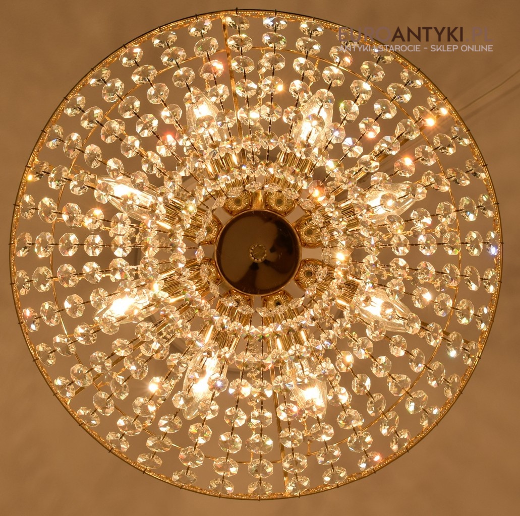 Rewelacyjny żyrandol mosiężny z kryształami.
