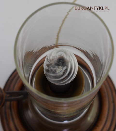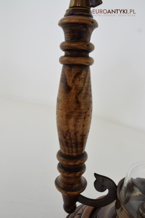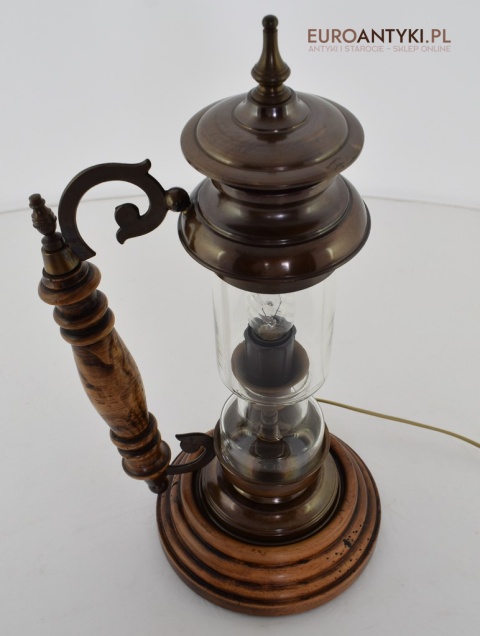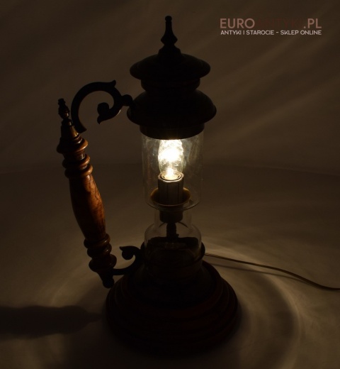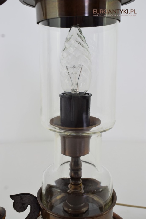 Podkreślamy, że całość jest bez uszkodzeń, przedmiot jest kompletny i został profesjonalnie wyczyszczony. Elektryka naszej lampki została wymieniona przez naszego fachowca. Wspominamy, że wszystkie nasze lampy wysyłamy bez żarówek, jednak współczesne żarówki LED, odpowiednie do tej lampki, są szeroko dostępne i oferują różne możliwości adaptacji do potrzeb oświetleniowych. Zapraszamy do adopcji tej lampki, która niewątpliwie stanie się wyjątkowym i rozmownym akcentem w Państwa domu.