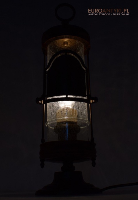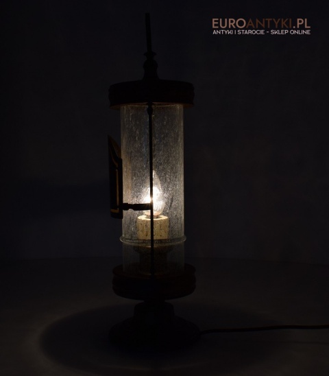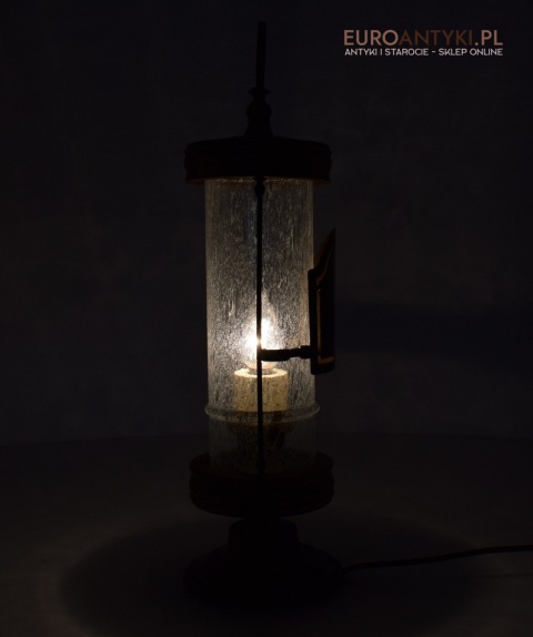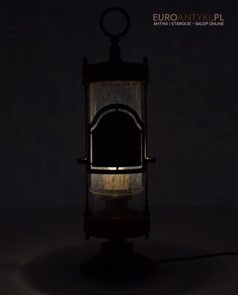 Stara lampa nie potrzebowała żadnych renowacji lub napraw. Została fachowo oczyszczona i wystawiona w naszym sklepie z antykami i starociami.