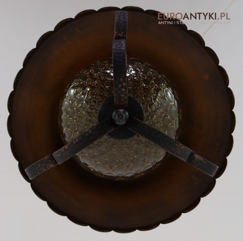 Korpus: patynowany metal / żelazo, ręcznie kuty + miedziany talerz jako klosz
