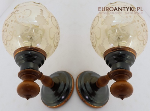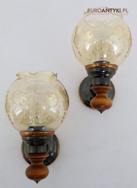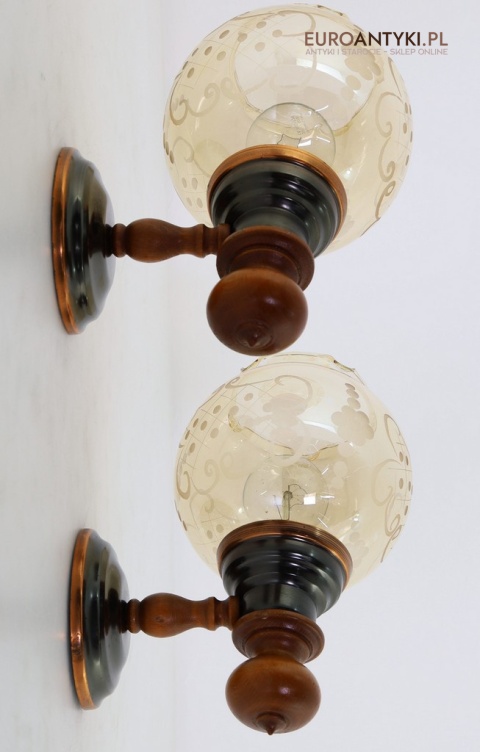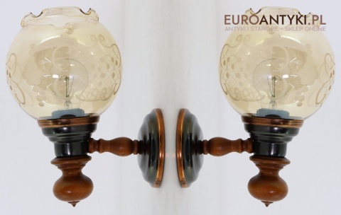 Przedstawiamy parę oryginalnych rustykalnych kinkietów retro, sprowadzonych z Francji ale wykonanych w Polsce, datowanych na około 1970 rok. Te stare lampy ścienne łączą w sobie klasyczne wzornictwo, solidne wykonanie i ponadczasowy styl, który doskonale wpisuje się w tradycyjne oraz nowoczesne wnętrza inspirowane stylem rustykalnym.