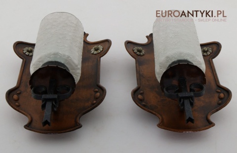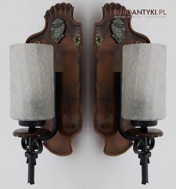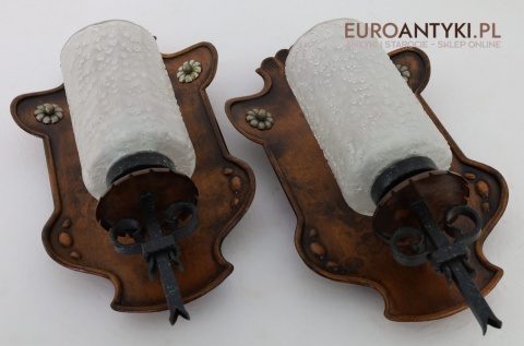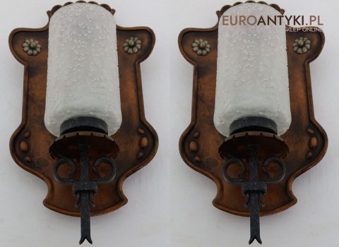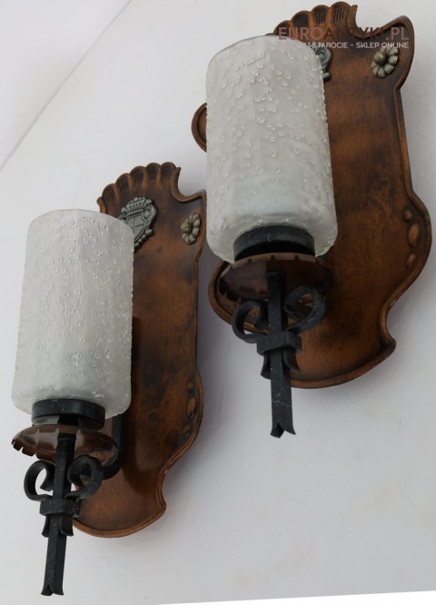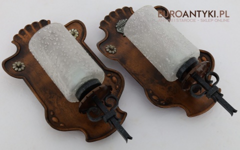 Te rustykalne kinkiety sprawdzą się doskonale w salonach, jadalniach, a także w przytulnych sypialniach. Ich klasyczny, ciepły wygląd idealnie komponuje się z drewnianymi elementami wystroju, tworząc przytulną, nastrojową atmosferę. Kinkiety te są nie tylko funkcjonalnym źródłem światła, ale również unikalnym elementem dekoracyjnym, którego wartość wzrasta z biegiem lat – takich przedmiotów już się nie produkuje, co czyni je jeszcze bardziej cennymi.