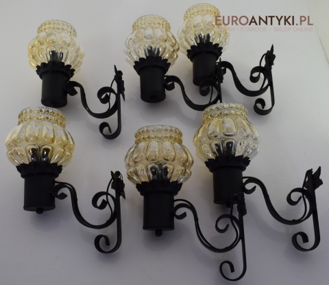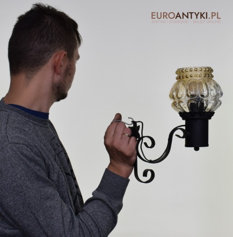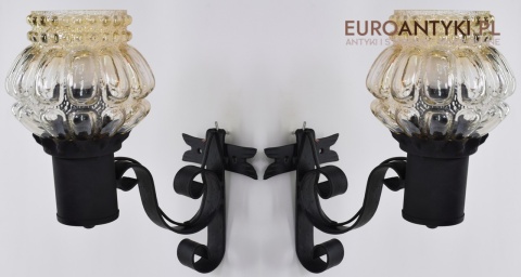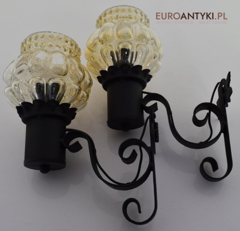 Rustykalne kinkiety z kutego metalu z kloszami. Lampy cottage.