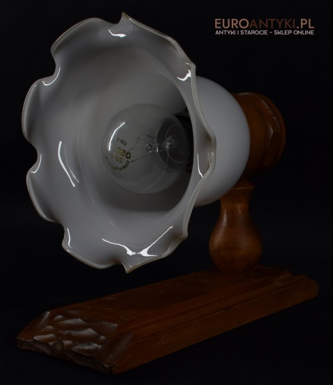 Całość bez uszkodzeń. Przedmiot kompletny, profesjonalnie wyczyszczony. Elektryka sprawna - sprawdzana przez naszego fachowca. Standardowe gniazdo elektryczne typu E27. Obecnie można kupić żarówki LED o różnym natężeniu, różnej barwie światła i różnym wyglądzie. Nawet mała żarówka może być dużej mocy i nie będzie pobierać wielu watt, przez co nie przegrzewa i nie uszkodzi kabli elektrycznych. Wszystkie lampy wysyłamy bez żarówek. Żarówki tego typu są łatwo dostępne w sklepach elektrycznych lub w internecie.