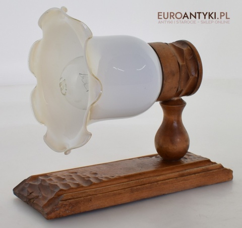 Rustykalny kinkiet drewniany ze szklanym kloszem. Lampy góralskie - wiejskie.
