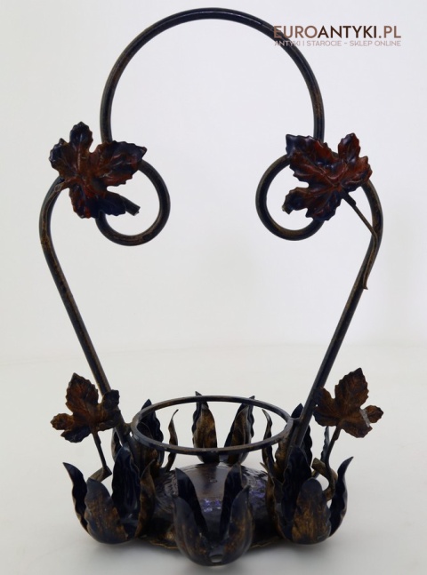 Zestaw pochodzi z Francji, z końca XX wieku ( około 1970 rok ). Idealny stan zachowania – całość kompletna, szkło bez uszkodzeń, koszyk stabilny i pięknie spatynowany.