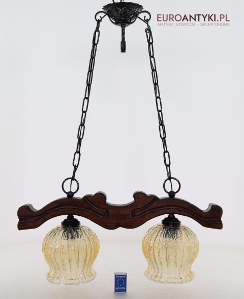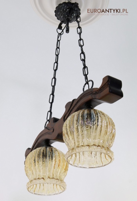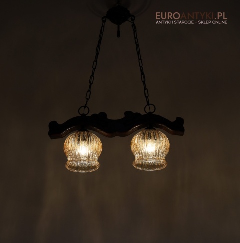 Rustykalne oświetlenie w ciepłym tonie - 2 punktowy żyrandol retro