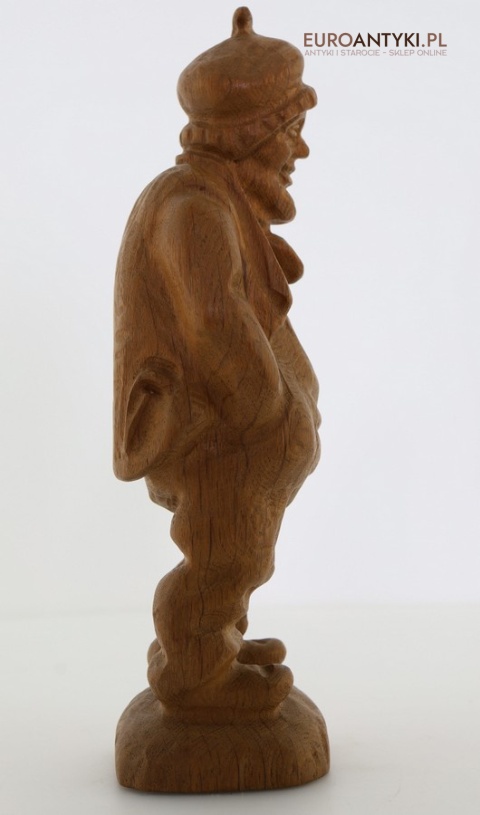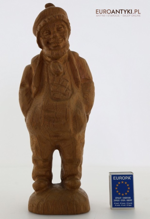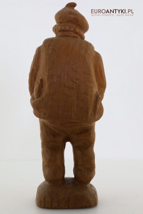 Rzeźba przedstawia postać z humorem i luzem – typowego „cwaniaka” w berecie. To rzadki okaz, w którym widać duszę rzemieślnika. Tego typu przedmiotów już się nie produkuje – jest to używana figura, z duszą i historią.