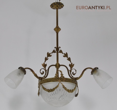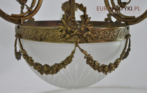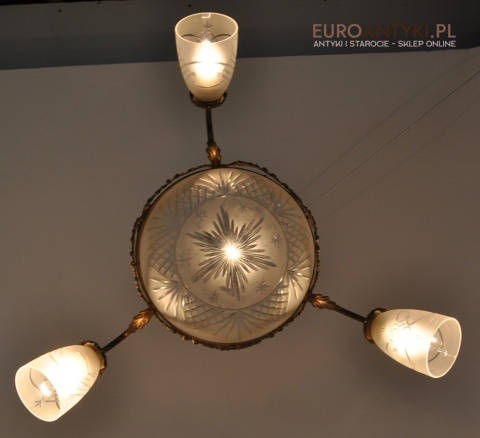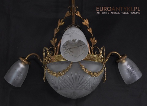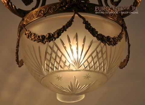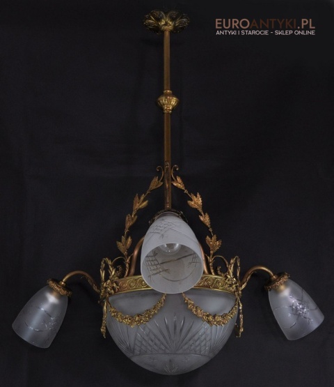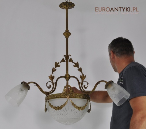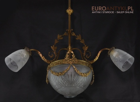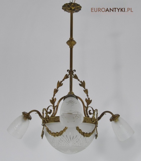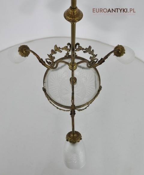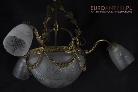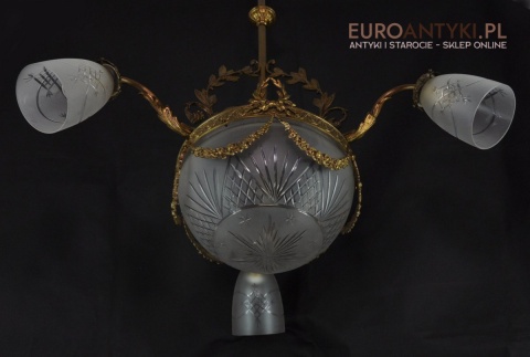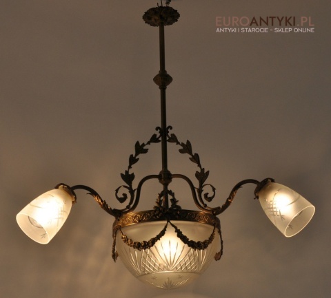 SECESYJNY ŻYRANDOL PAŁACOWY SALONOWY ART NOUVEAU ORYGINALNA SECESJA ORYGINAL JUGENDSTIL KRYSZTALOWE KLOSZE