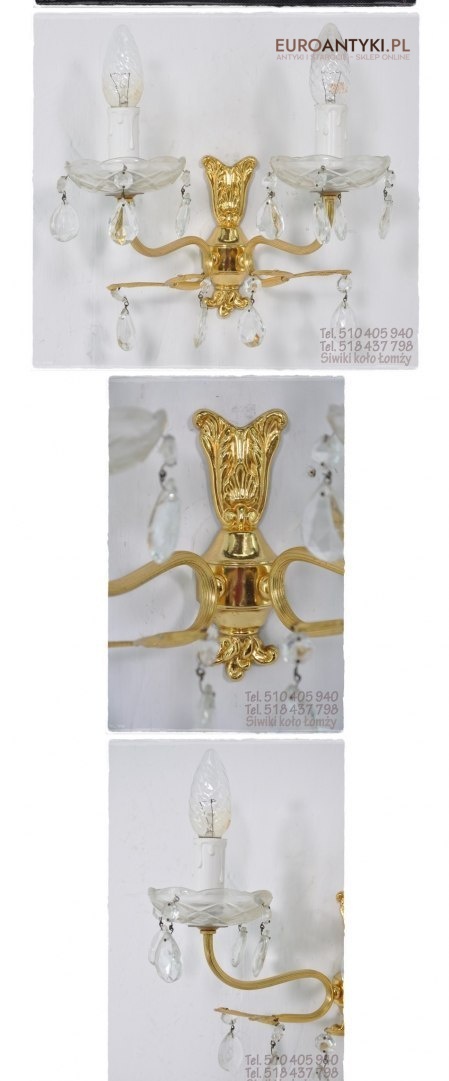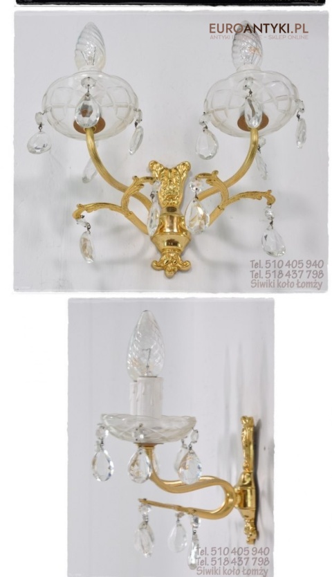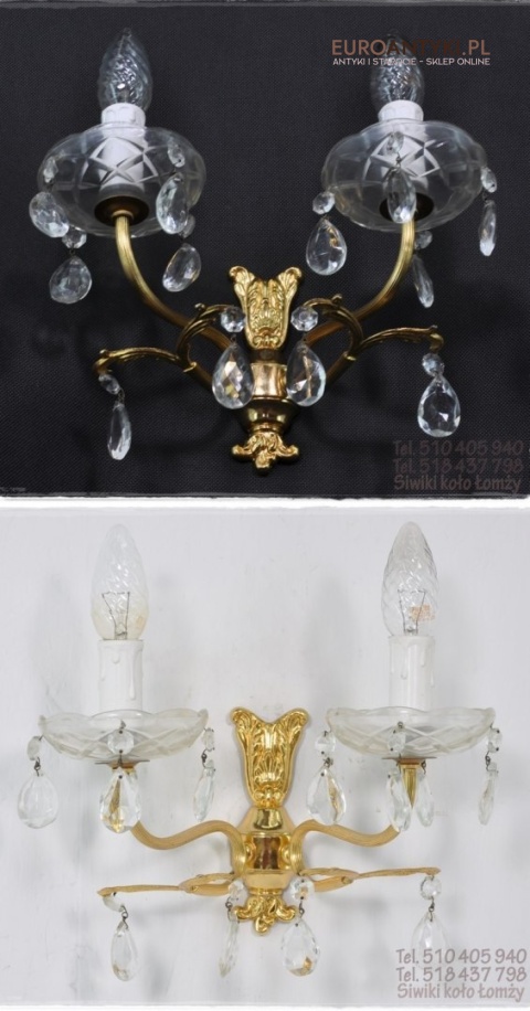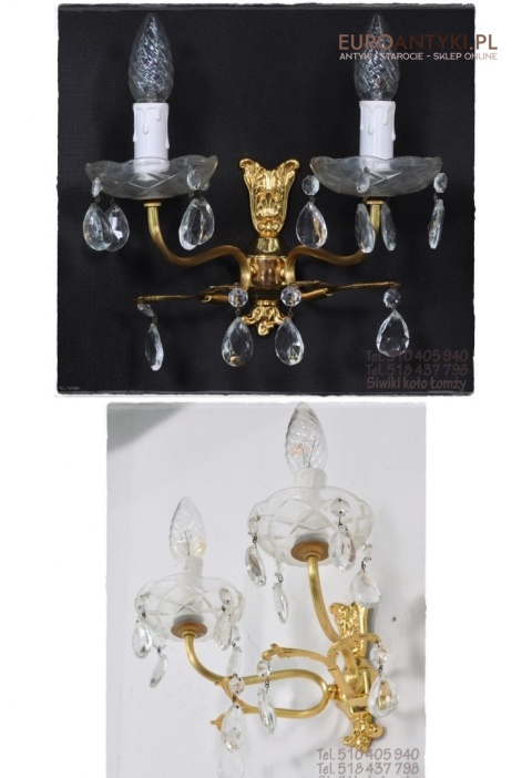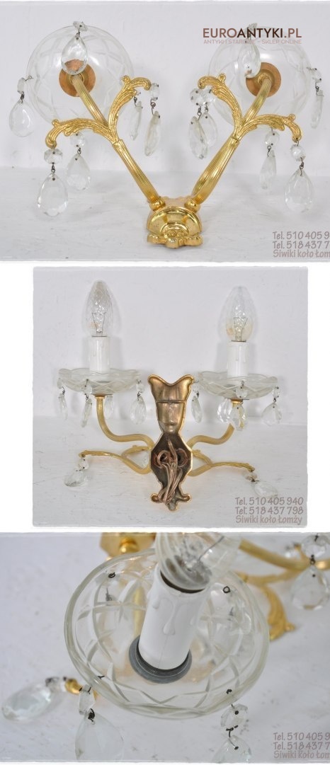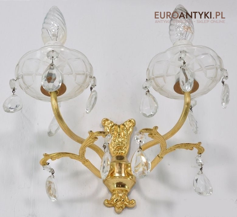 Mam na sprzedaz stary kinkiet z mosiadzu + krysztalowe wisiory +