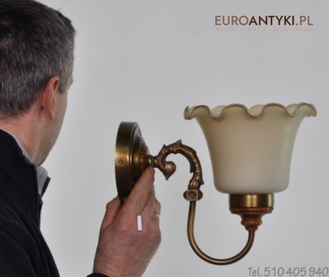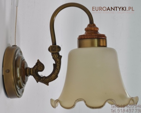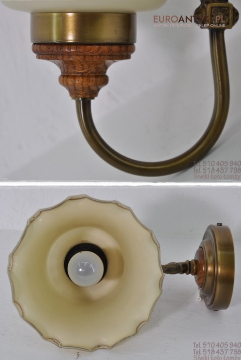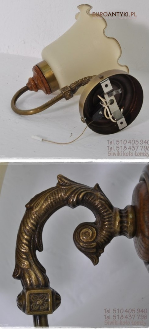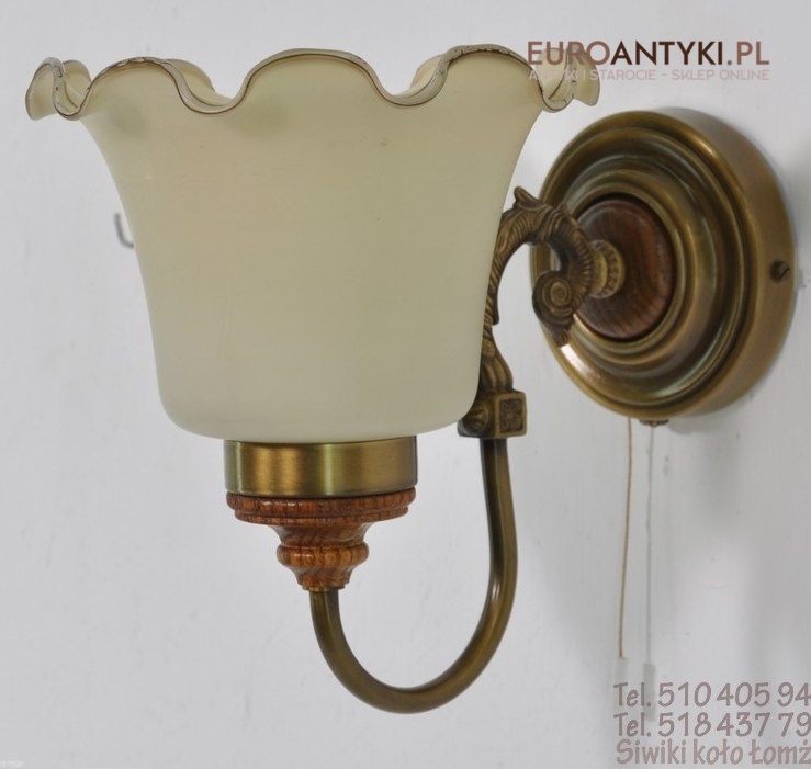 Mam na sprzedaz stary kinkiet z mosiadzu/brazu , drewna + szklany klosz .