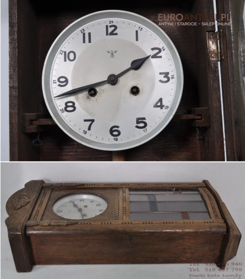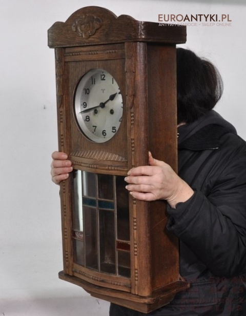 STARY ZEGAR SKRZYNIOWY ANTYK F.M.S. FMS WITRAZ