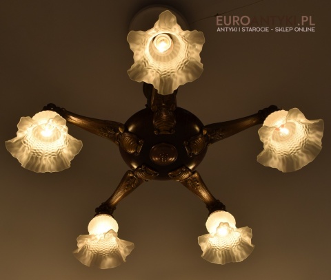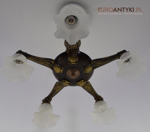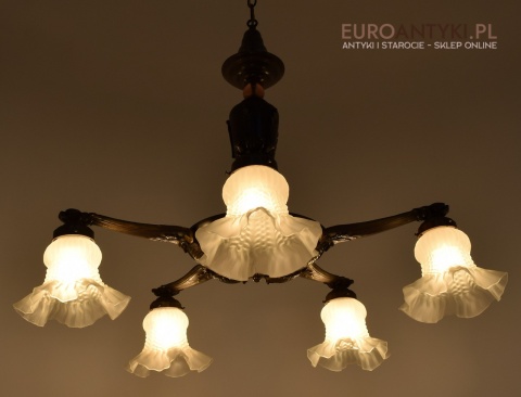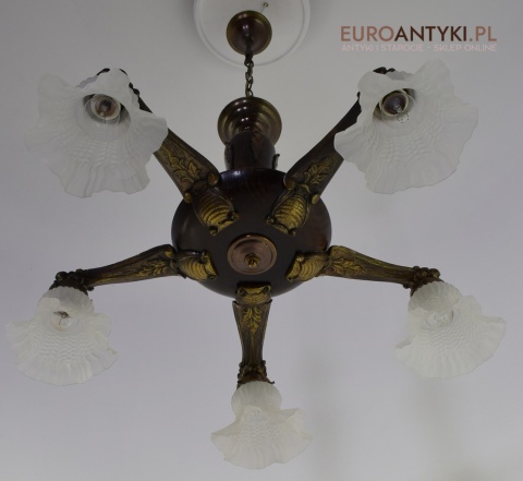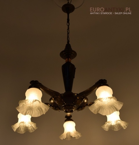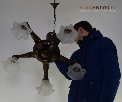 Salonowy żyrandol zabytkowy z lat 1930. Lampy antyczne.