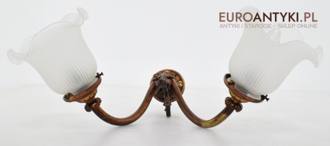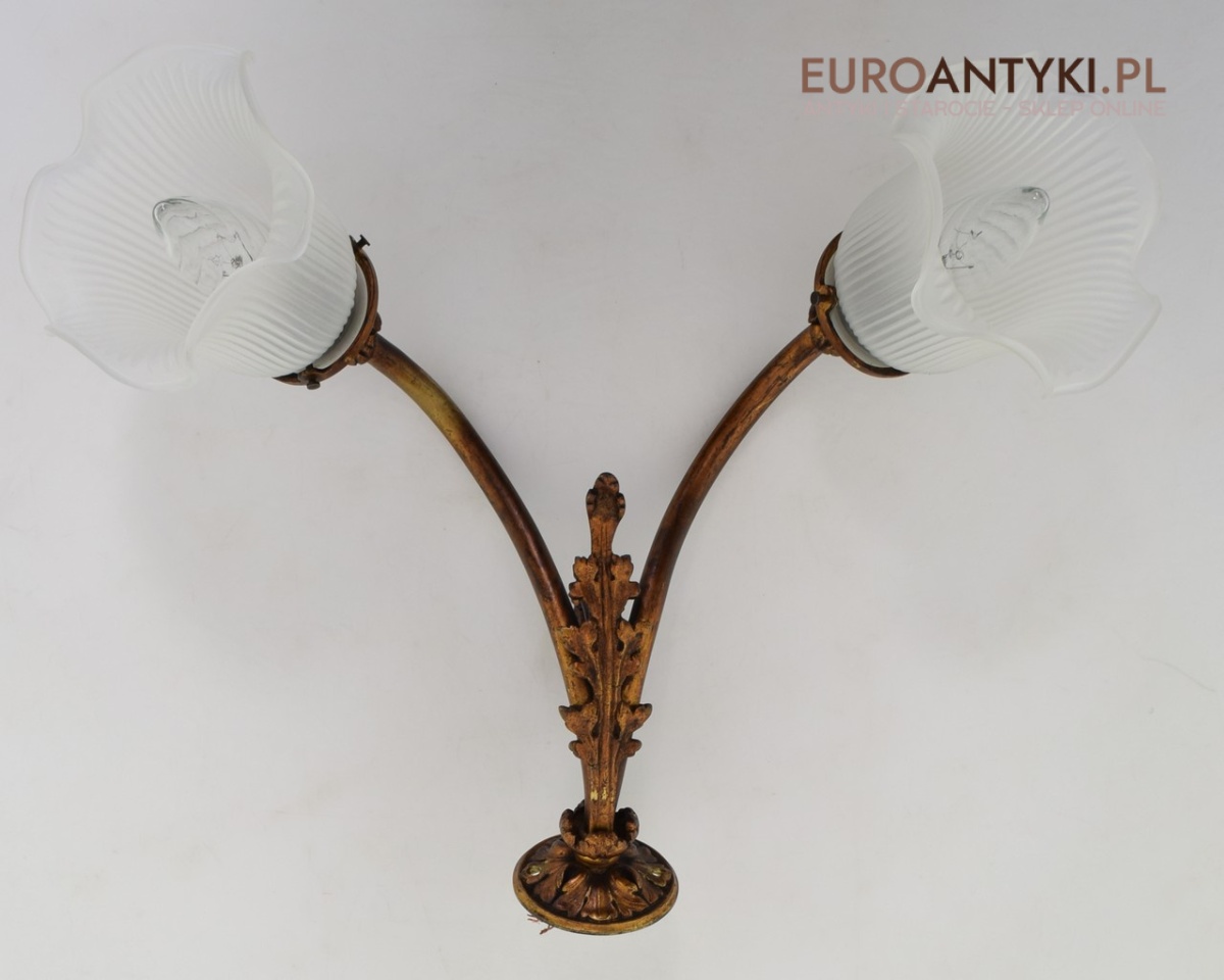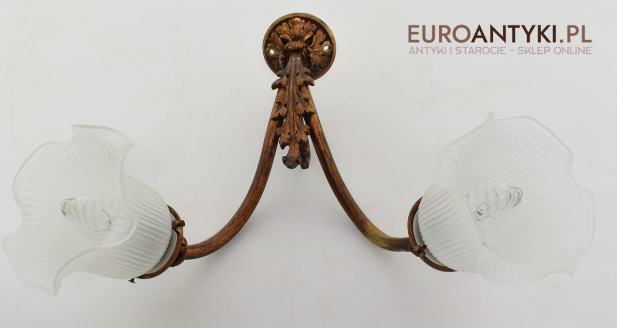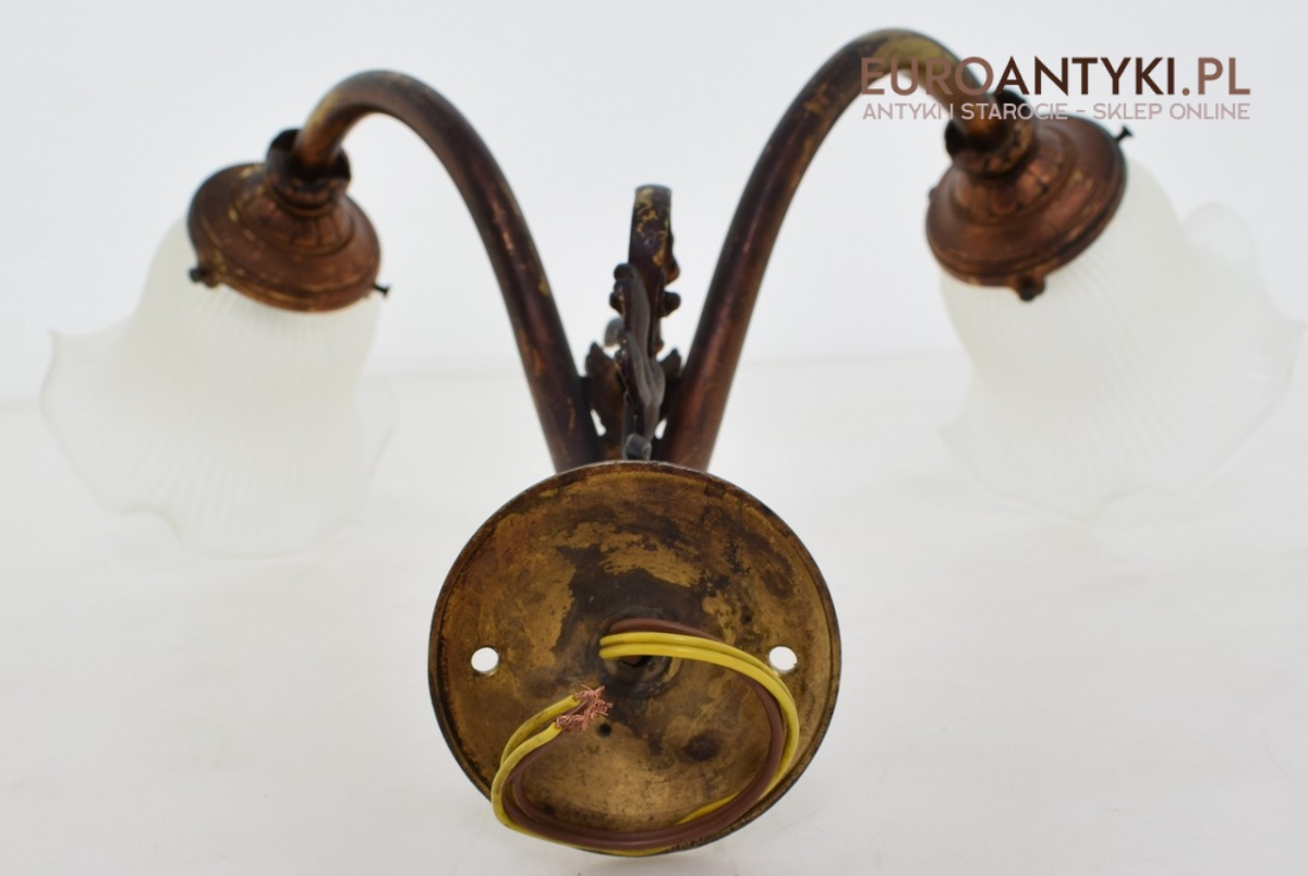 Secesyjny kinkiet dwuramienny z kloszami. Art Nouveau. Jugendstil.