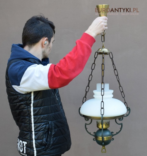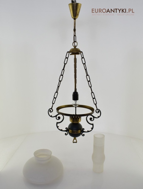 Stara rustykalna lampa wisząca w stylu Empire.