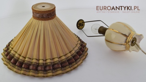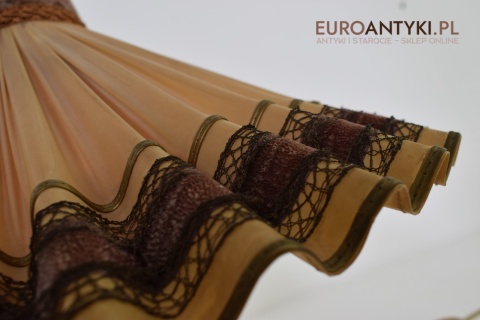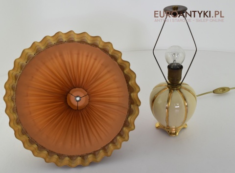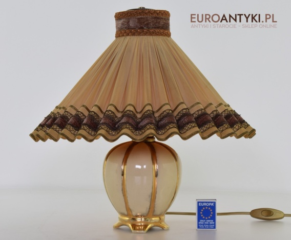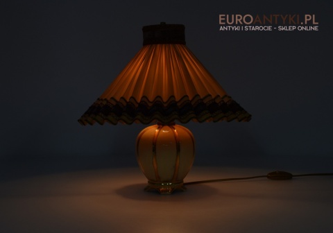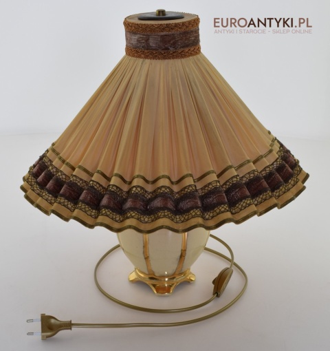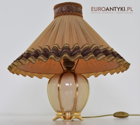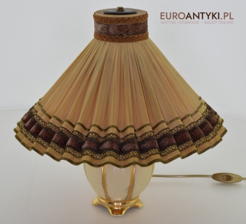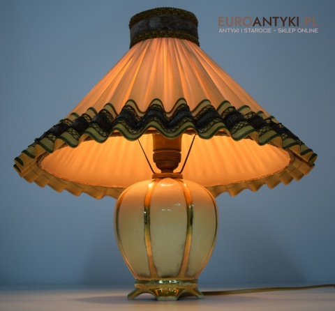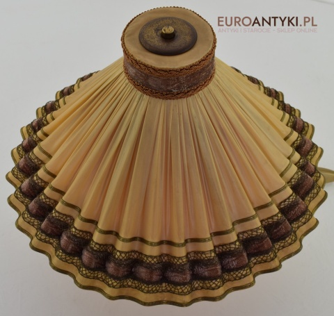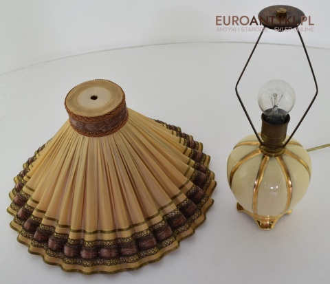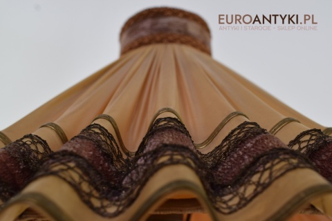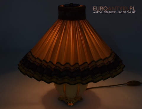 Starodawna lampa stołowa z pięknym abażurem vintage - antyki lampy