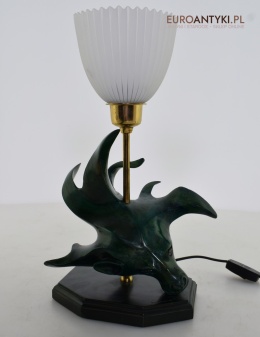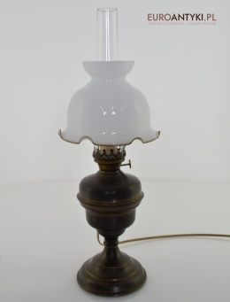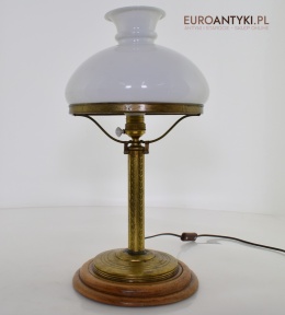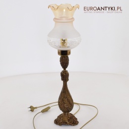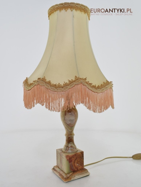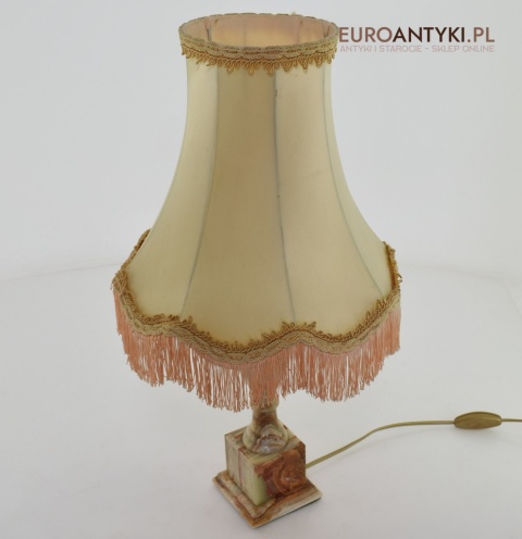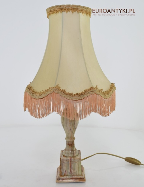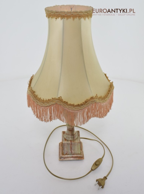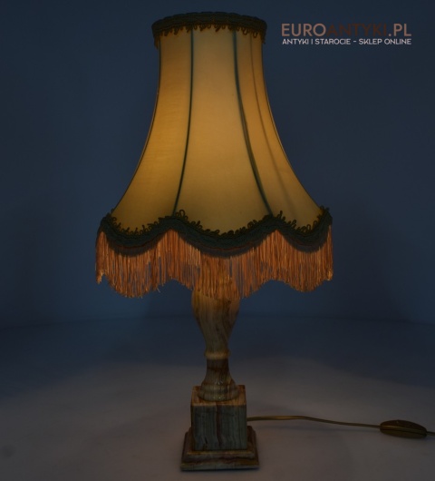 Starodawna onyksowa lampa stołowa z abażurem z babcinych czasów.